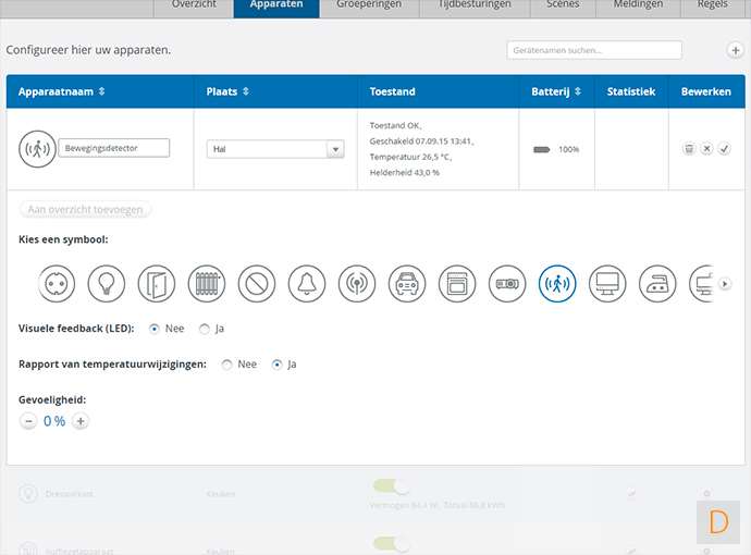 Als eerste heb ik de bijgeleverde deur-/raamsensor toegevoegd. Deze zou geen probleem moeten geven, aangezien dit een eigen module is. Er wordt netjes, door middel van een youtube video, uitgelegd hoe je de module moet toevoegen. Deze deur/raamsensor wordt niet door Devolo zelf gemaakt maar door de fabrikant Philio. Je kunt een review van deze sensor hier vinden.
