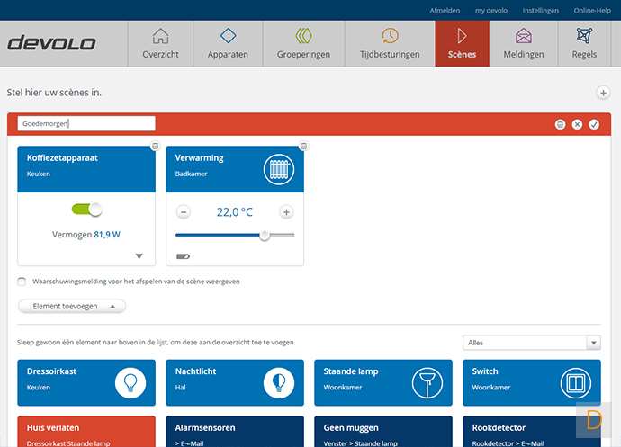 Met scene's kun je door middel van 1 druk op de knop meerdere apparaten laten aanzetten.