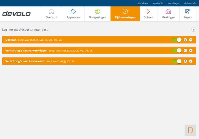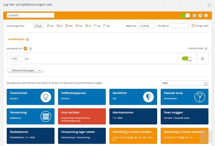 Je kunt schakelen op basis van dagen van de week, begin en eindtijd. Je kunt 1 of meerdere modules tegelijk hiermee laten aanzetten.
