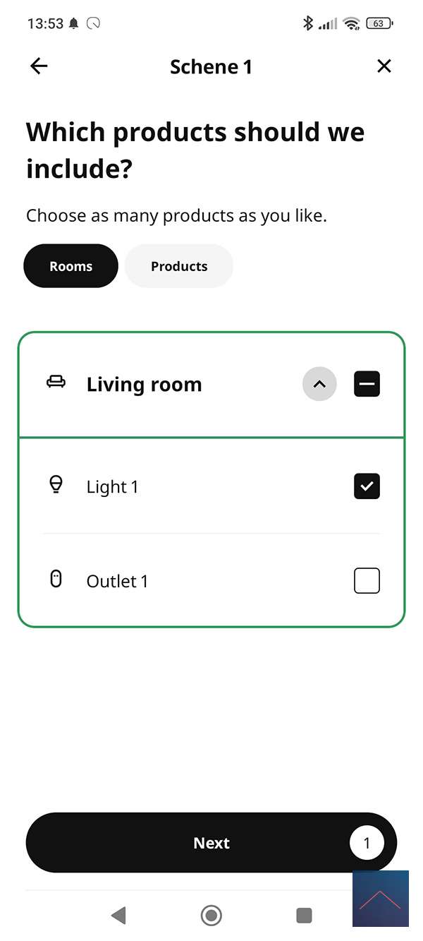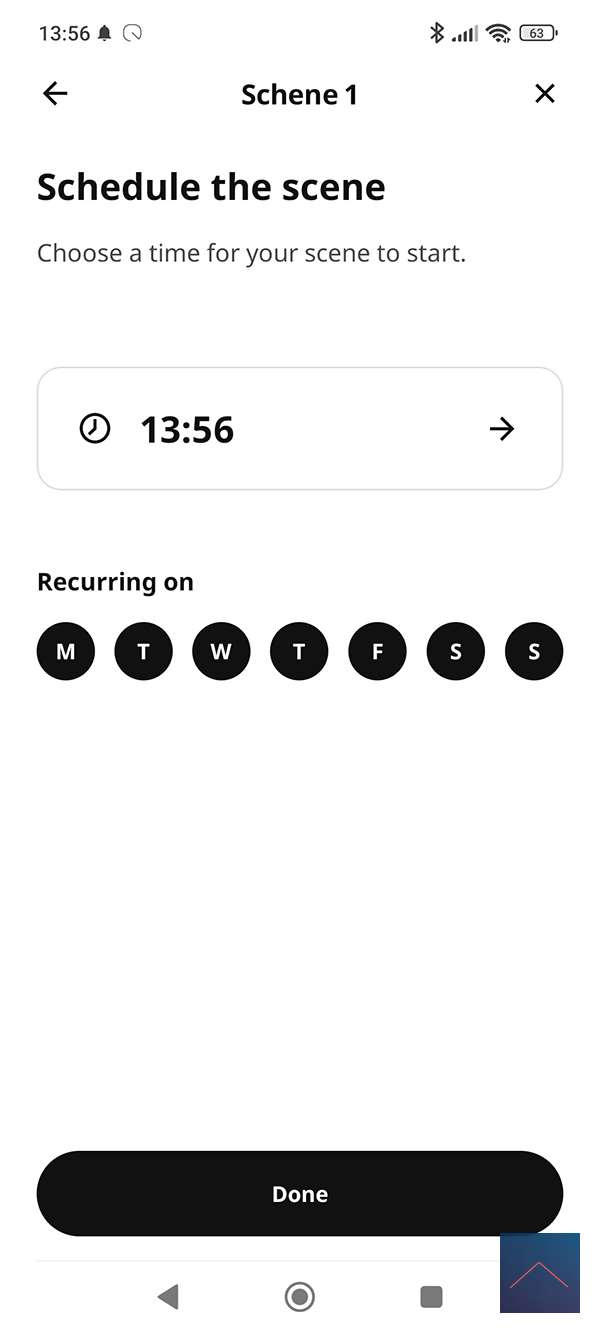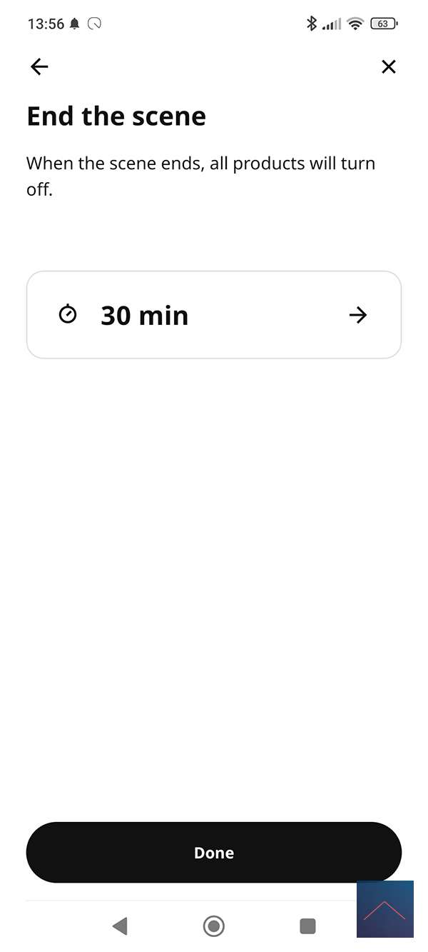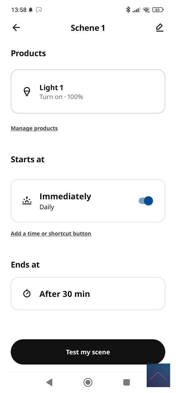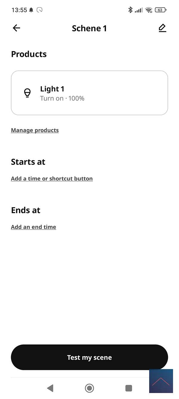 Ja, dat is alles wat betreft het maken van een scene. Het is jammer dat dit niet zo uitgebreid is. Je zou bv willen schakelen op wanneer je thuis komt of wanneer je naar bed gaat. Het is jammer dat Ikea met deze nieuwe hub niet de kans heeft gepakt om een echte scene editor te maken.