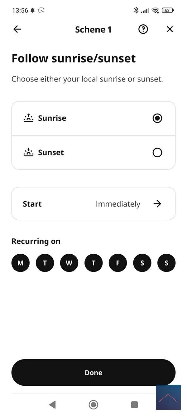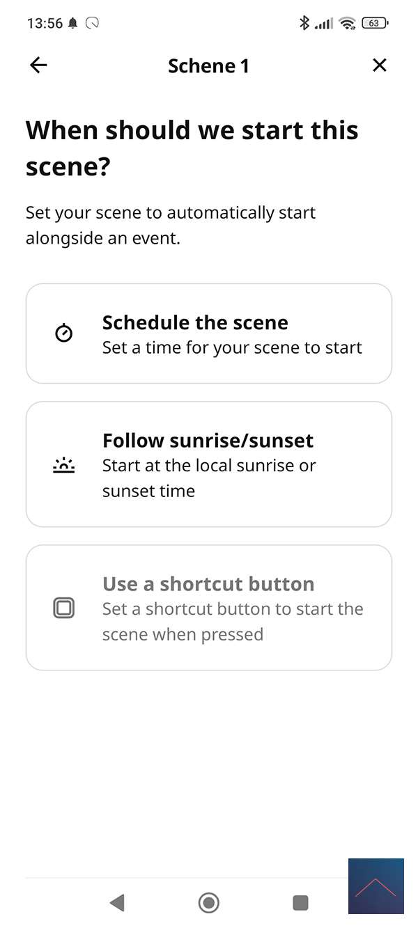 In de laatste stap bepaalde je wanneer de scene start en wanneer die stop. Je kunt hierbij een schema aanhouden, schakelen wanneer de zon ondergaat of opkomt of een knop gebruiken om de scene te starten.
