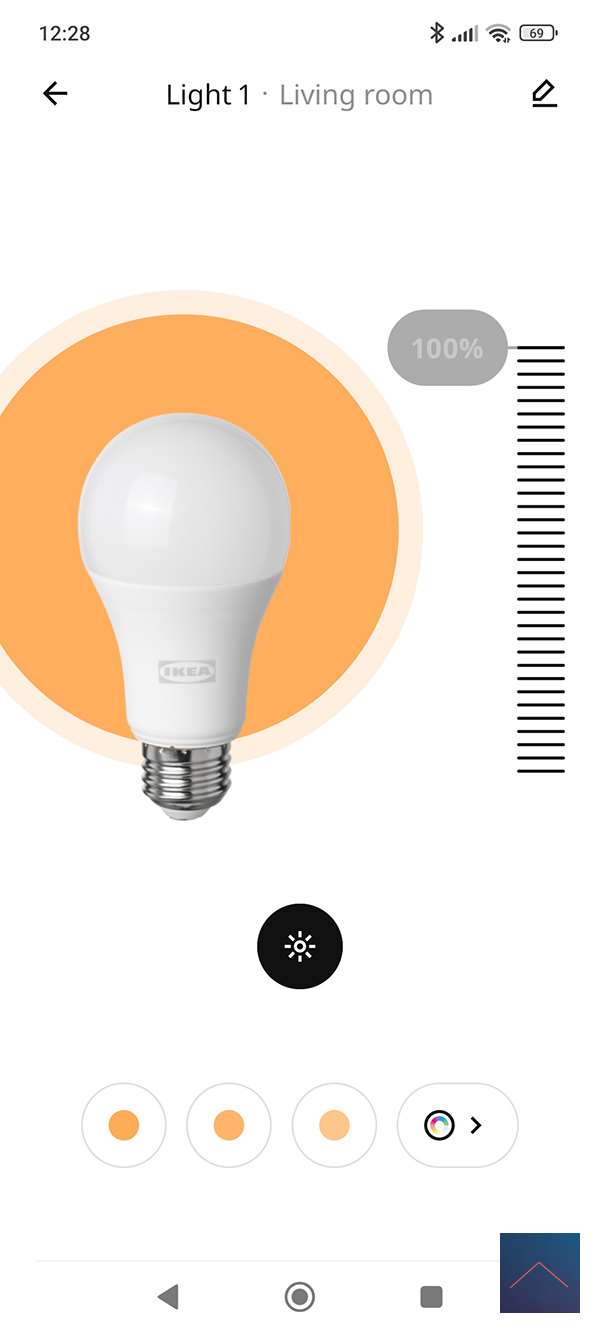 Je kunt deze lamp aan- en uitzetten, het dimnivo bepalen en de kleuren wijzigen. Helemaal compleet dus.