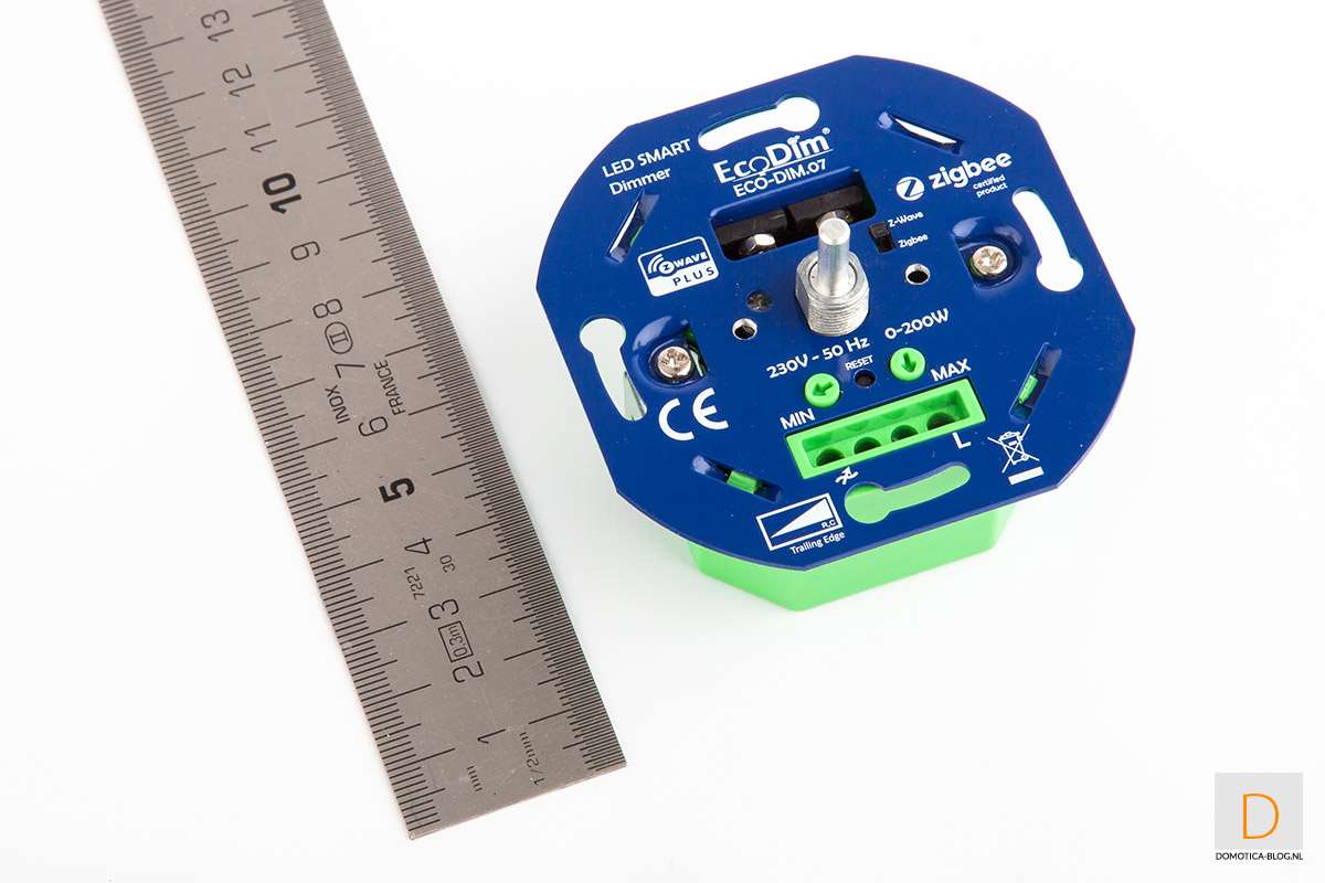 Met deze Eco-DIM. 07 kun je op afstand een lamp dimmen of hem aan- of uitzetten. Hier is niet zoveel nieuws aan want, zoals je op onze website kunt lezen, zijn er een hoop andere merken waarmee de mogelijk is. Maar deze dimmer heeft een paar unieke features. Zo werkt hij namelijk met zowel de Z-Wave Plus als de Zigbee protocol. Door deze combo zullen de meeste controllers wel werken. Ander voordeel is dat hij meteen meer toekomstbestendig is omdat wisselen van controller een stuk gemakkelijker gaat.