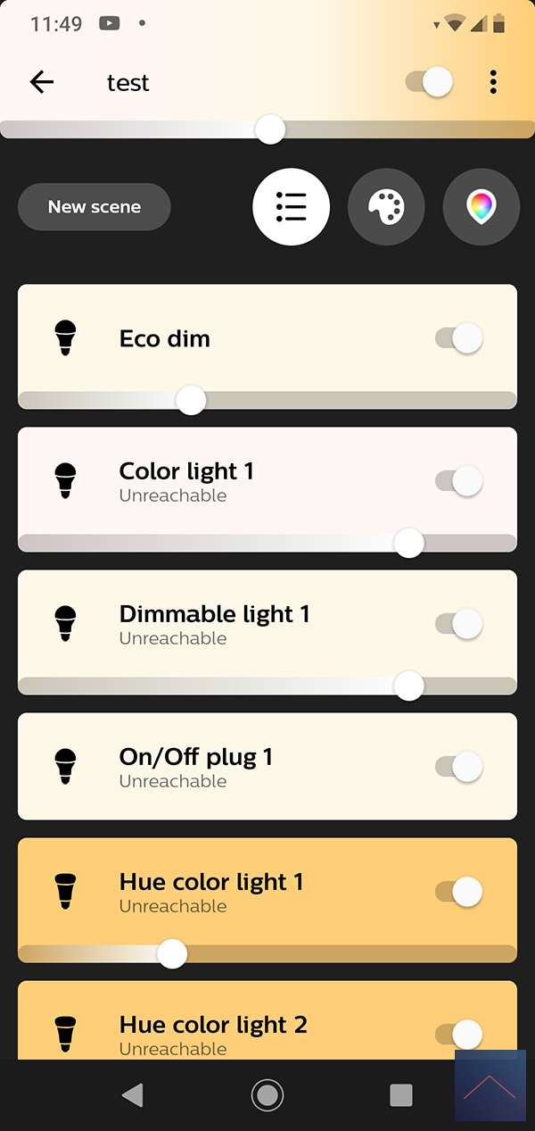 Ik vind het wel leuk om de Eco-DIM als wake light te gebruiken. Hiervoor heeft HUE een standaard scene ingebakken, dus deze gaan we ook gebruiken om de lamp aan te zetten.