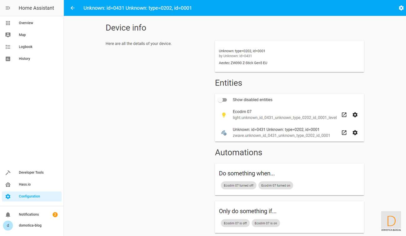 We gaan deze Eco-DIM ook toevoegen aan HASS welke wij geïnstalleerd hebben op een Raspberry PI3 met een Aeon Labs Z-Wave USB stick. Wij gaan hem dus als Z-Wave toevoegen, dus zorg dat het schakelaartje aan de voorkant van de dimmer op Z-Wave staat.