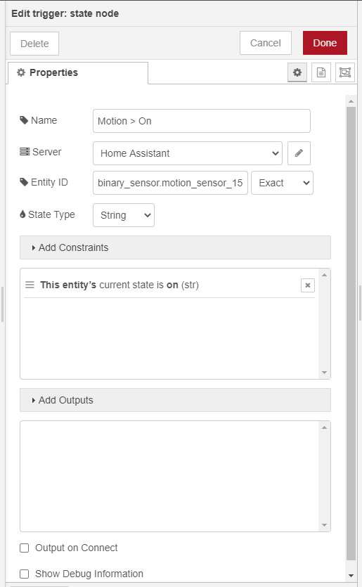 Ik wil graag dat als er beweging is (en de zon onder) dat dan de Eco-DIM aangezet wordt.
