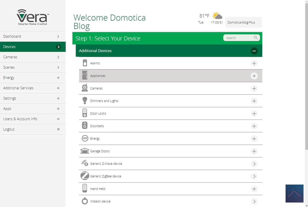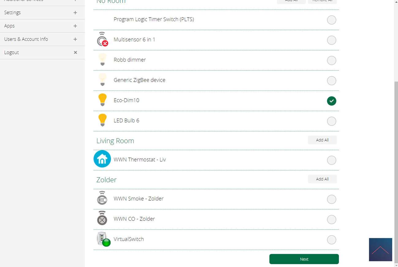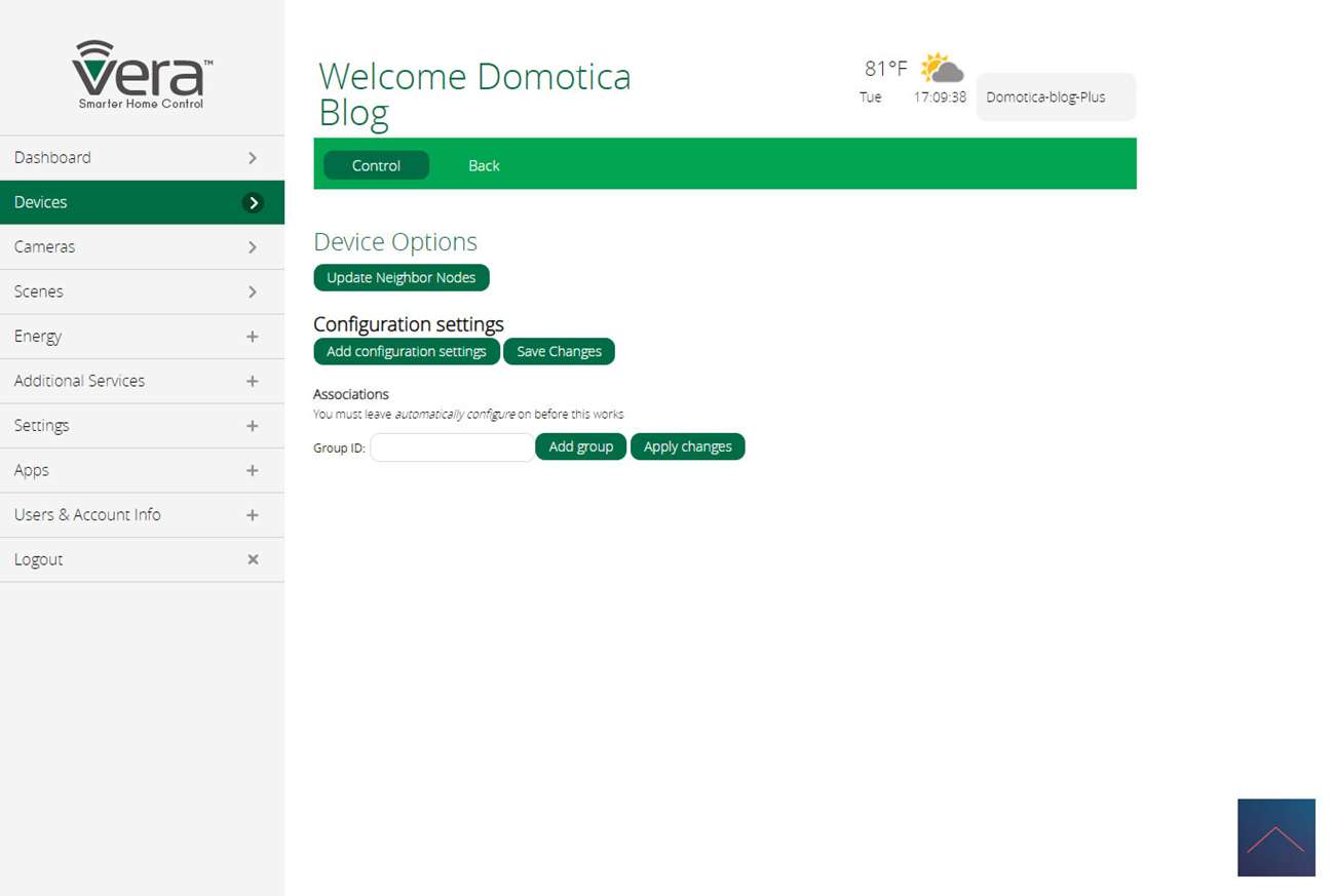 Je kunt namelijk beter eerst inloggen op de Vera en naar je apparaten gaan en op toevoegen klikken. We gaan hem toevoegen als "generic Z-Wave device" omdat we de Eco-DIM niet kunnen vinden. Na wat stappen zetten we de stroom op de dimmer. Helaas werd hij niet gevonden, maar we proberen het nogmaals en drukken nog 2x achter elkaar op het knopje aan de voorkant van de dimmer. Hij werd direct gevonden en zie hem bij mijn apparaten.