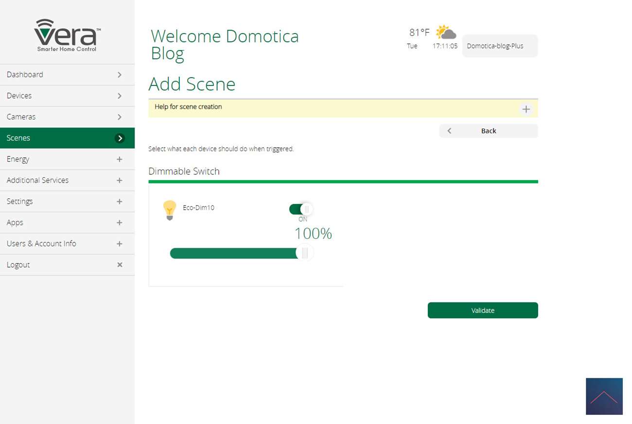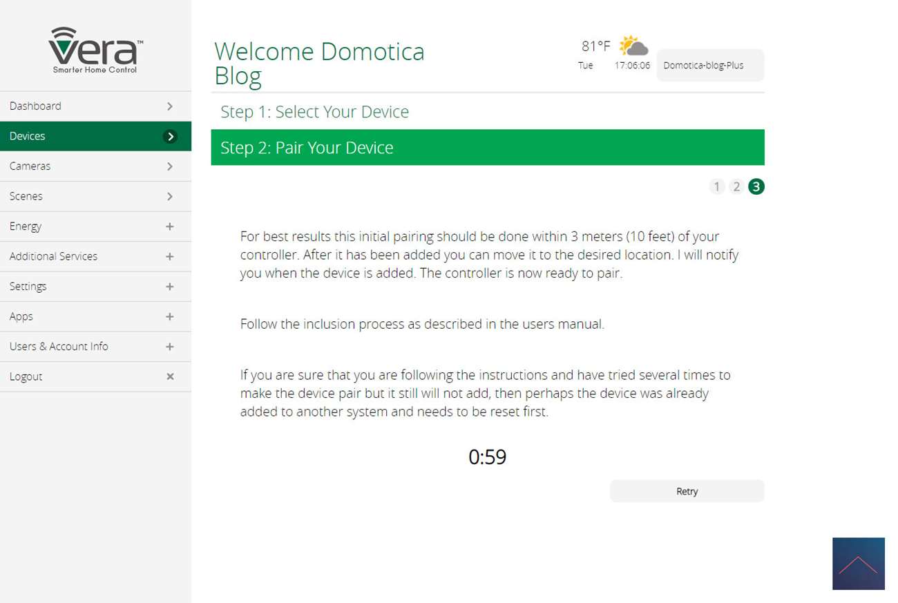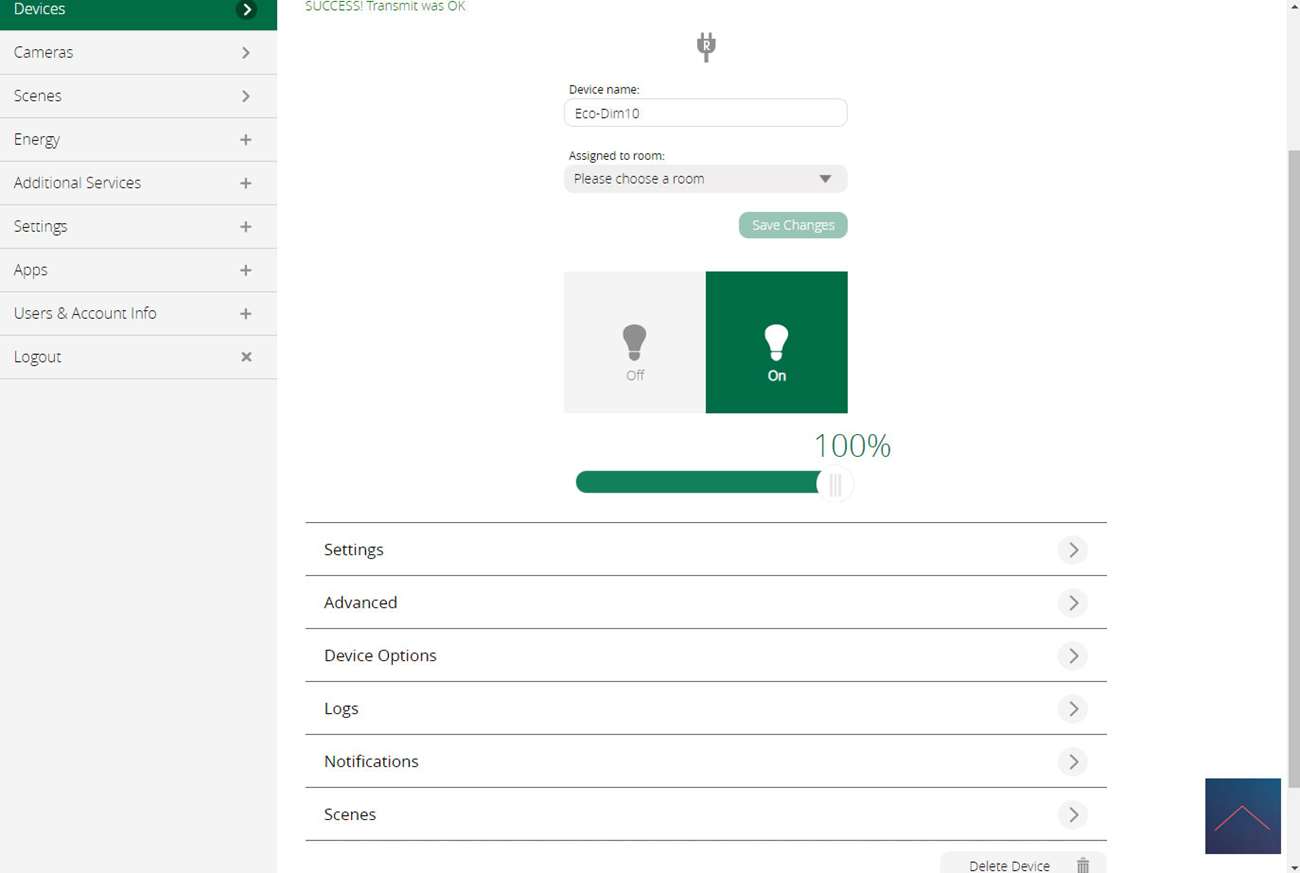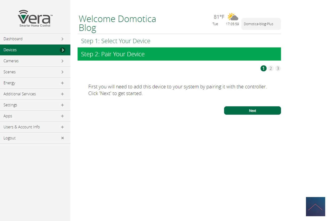 Je kunt namelijk beter eerst inloggen op de Vera en naar je apparaten gaan en op toevoegen klikken. We gaan hem toevoegen als "generic Z-Wave device" omdat we de Eco-DIM niet kunnen vinden. Na wat stappen zetten we de stroom op de dimmer. Helaas werd hij niet gevonden, maar we proberen het nogmaals en drukken nog 2x achter elkaar op het knopje aan de voorkant van de dimmer. Hij werd direct gevonden en zie hem bij mijn apparaten.