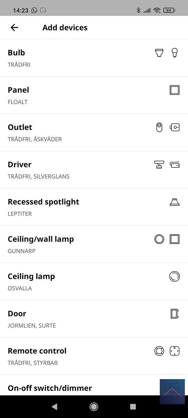 We starten nu de IKEA APP op en gaan naar "instellingen" en dan naar 'beheer lampen' en drukken op het plusje. De dimmer kan niet rechtstreeks gekoppeld worden aan de HUB dus dit moet via een afstandsbediening. Deze pakken we er ook bij.