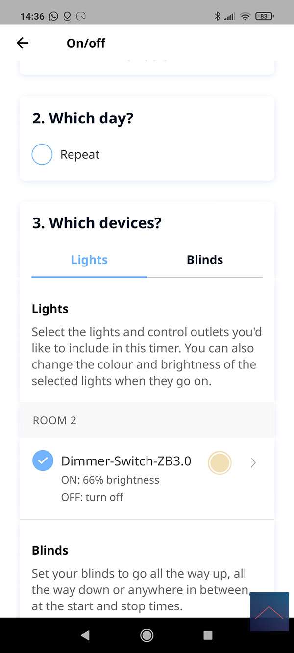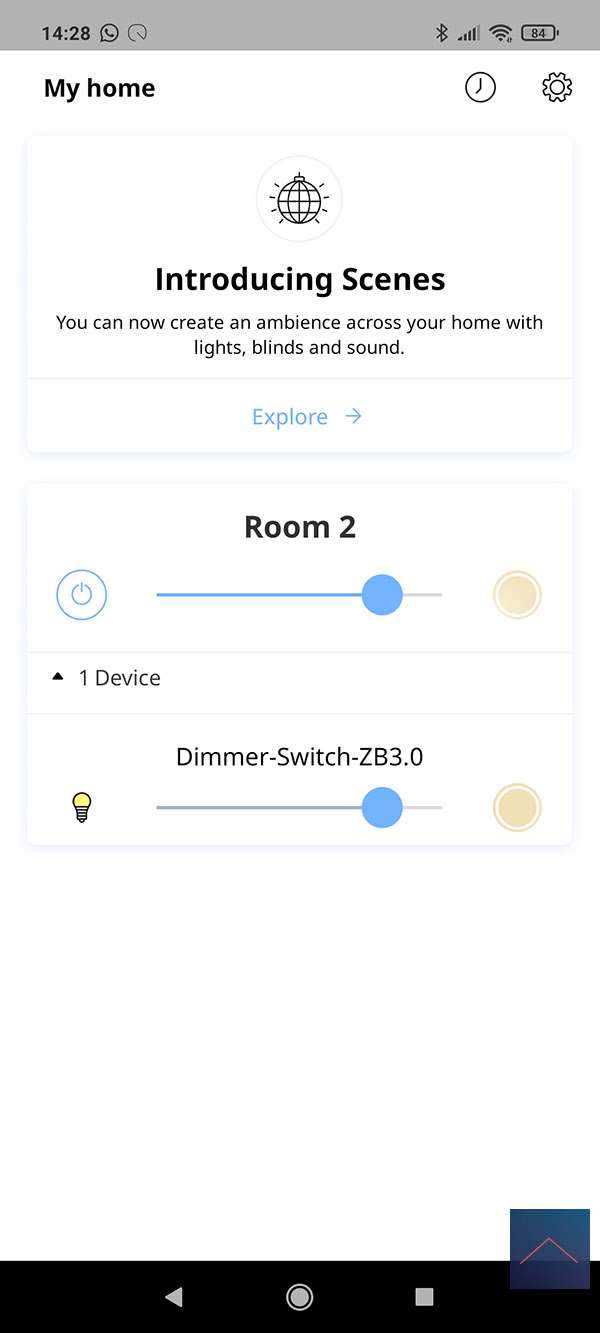 De dimmer werd gevonden en ik kan hem bedienen (aan/uit en dimmen).