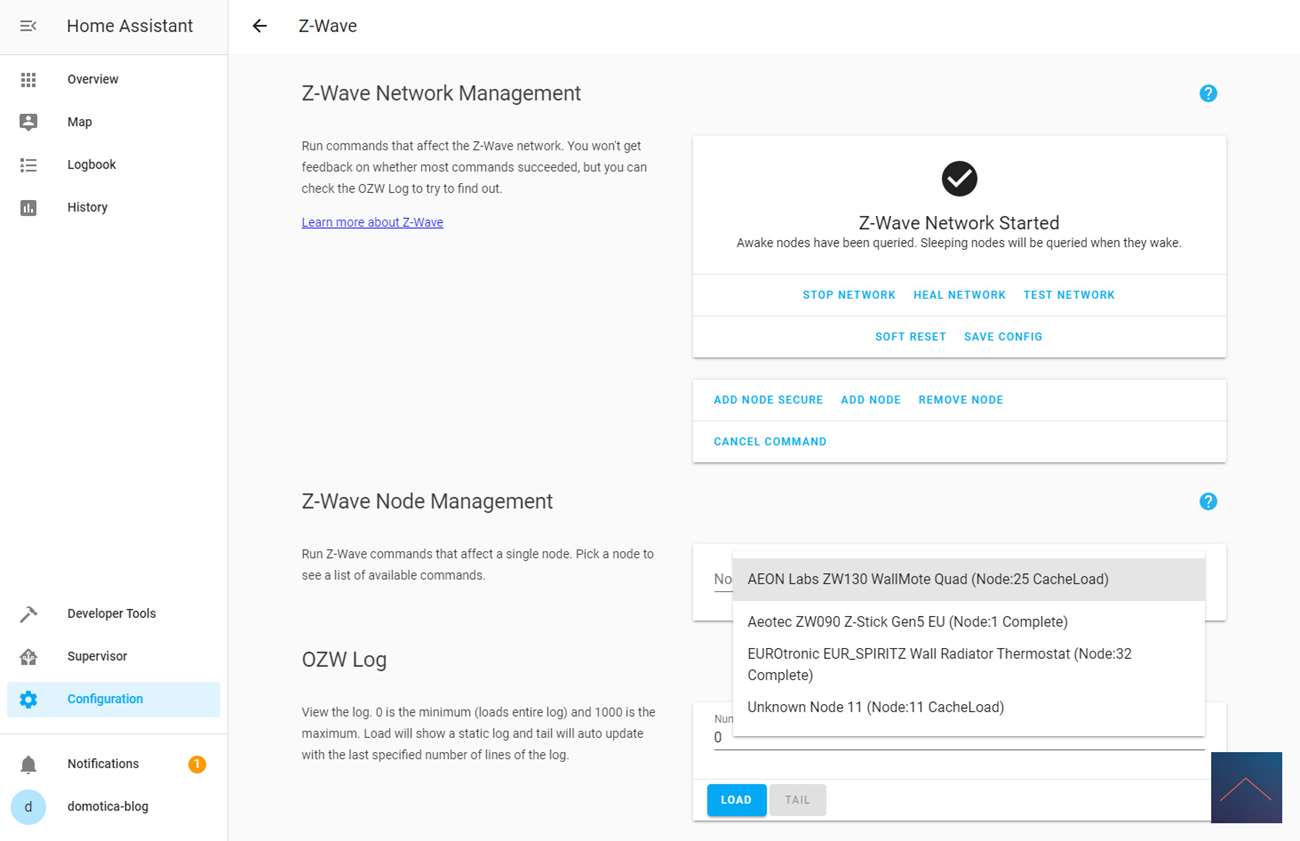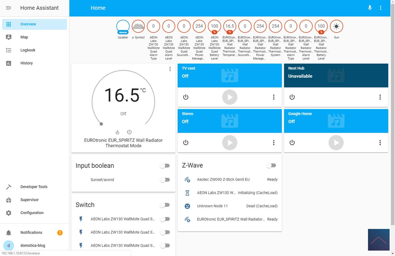 Zoals gebruikelijk is de laatste controller waarmee we deze thermostaat gaan testen Home Assistant. We gaan hem testen ism de Aeotec USB Z-Wave stick.