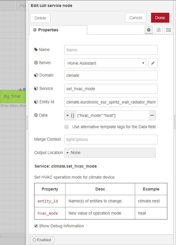 Ik wil graag dat de thermostaat om 8:00 aangezet wordt.. Ik gebruik hiervoor als trigger de big timer en als het 08.00 uur is zet ik de thermostaat modus op "heat".