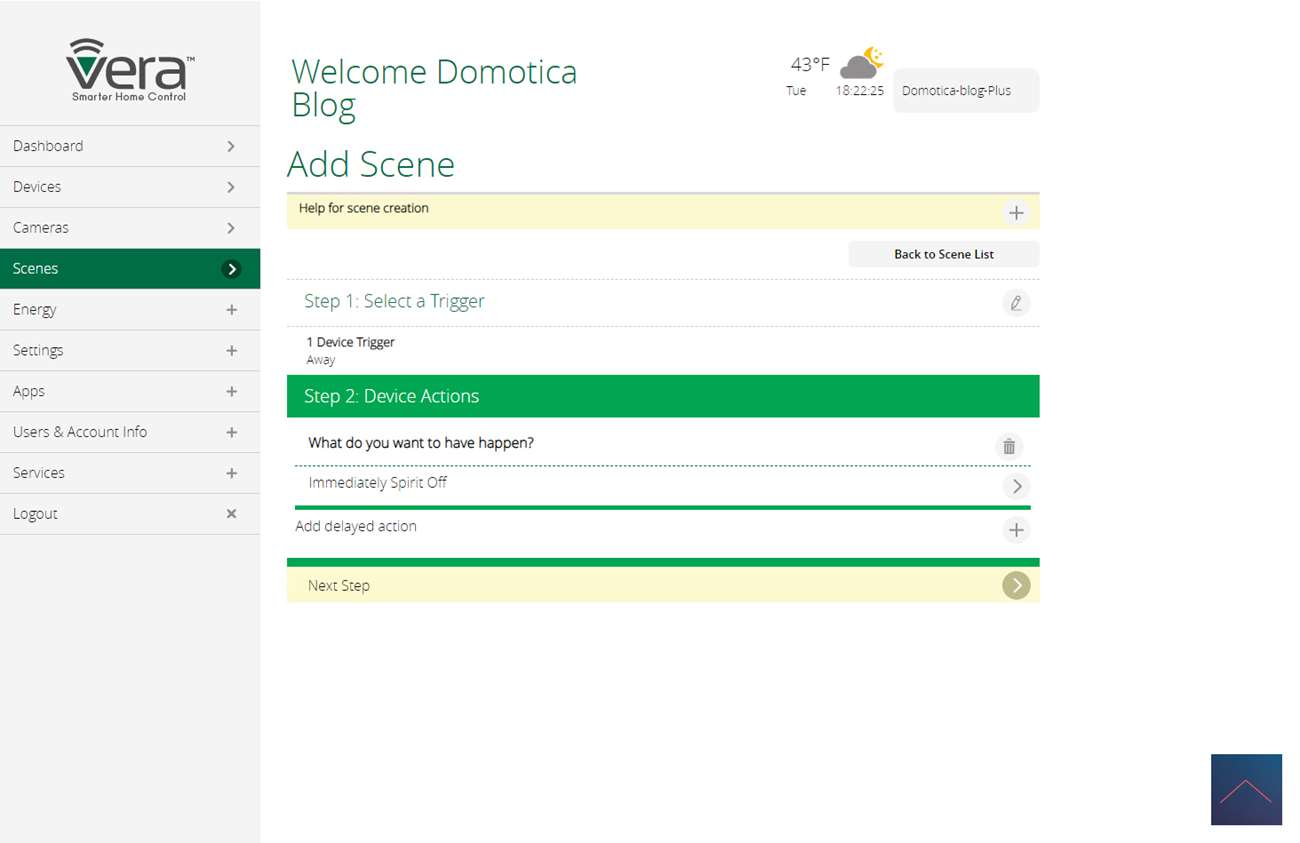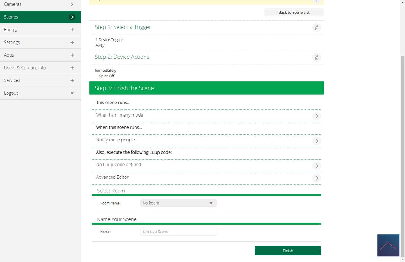 Is natuurlijk super handig dat als ik weg ga dat de spirit naar een lagere temperatuur gaat. We gaan hiervoor een scene maken waarbij we als trigger de locatie van je telefoon gebruiken.