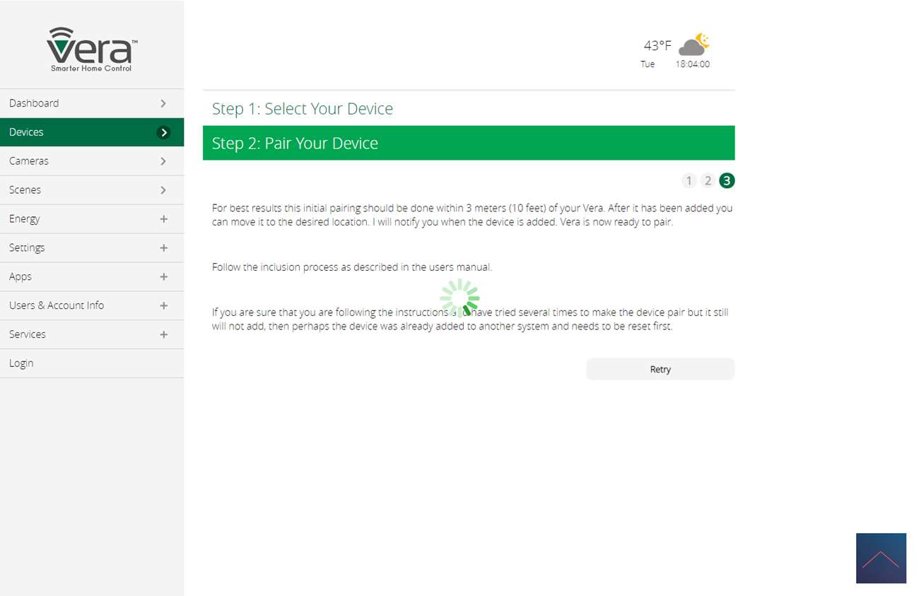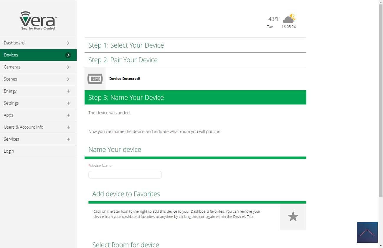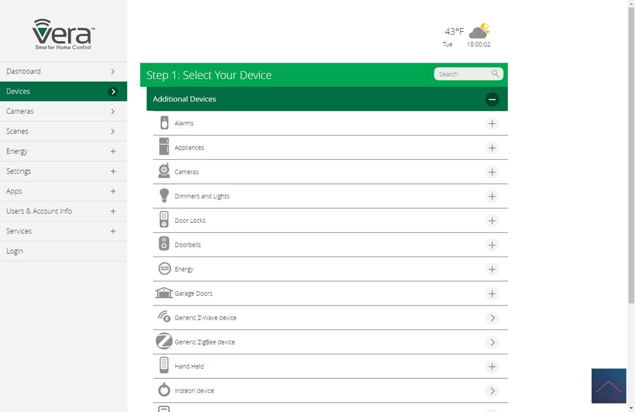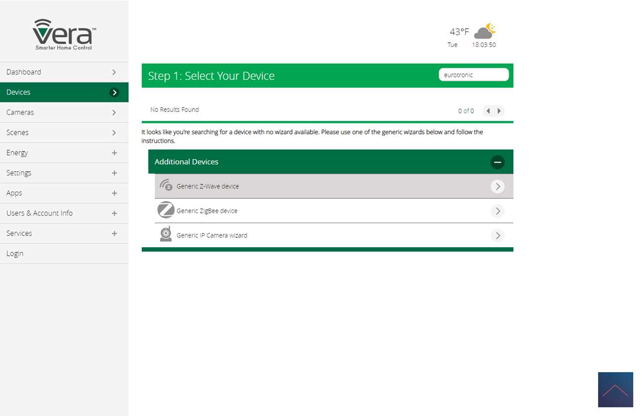 We gaan deze slimme thermostaat kraan op de Vera installeren. De eerst stap is om in te loggen en naar je apparaten te gaan en daar Spirit op te zoeken. Zoals we wel vaker zien bij de Vera werd hij helaas niet gevonden. Geen nood want vaak lukt het toevoegen als "generic z-wave" wel. Dus in dit geval doen wij dit ook. Als je een paar keer op next hebt geklikt vraagt de Vera om de thermostaat in toevoegen modus te zetten.