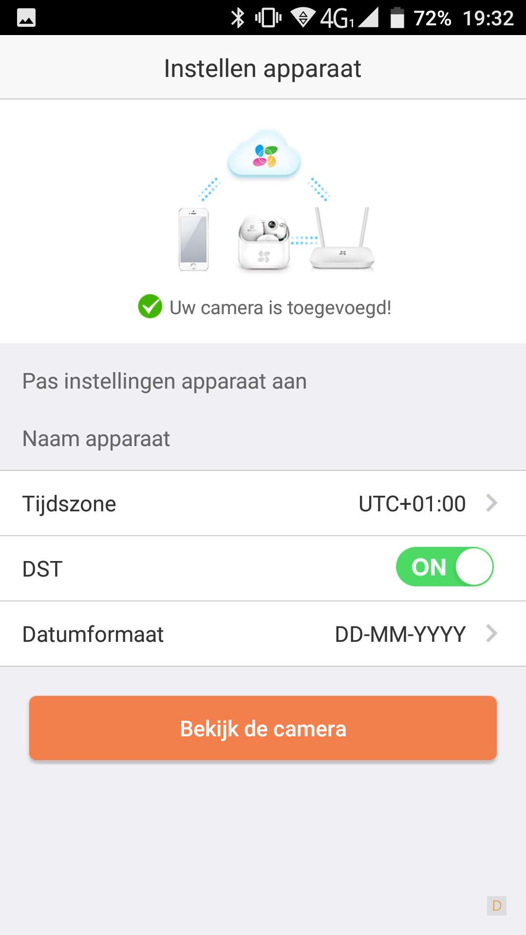 Het is aan te bevelen om eerst de camera te installeren en hem dan pas op de juiste plek op te hangen. De installatie kun je starten door de APP te downloaden (iOS en Android). Na het installeren moet je een account aanmaken en bevestigen via de e-mail of je telefoon. Om de camera te koppelen aan de APP moet je de QR code scannen welke aan de zijkant van de camera zit. Als hij is toegevoegd moet je verbinding maken met je WiFi netwerk. Dit ging bij mij niet helemaal van een leien dakje, maar nadat ik hem dichter bij de router had gebracht maakte hij verbinding. Vervolgens geef je je de tijdzone aan en kijk je of de camera werkt. Allemaal redelijk simpel te doen.