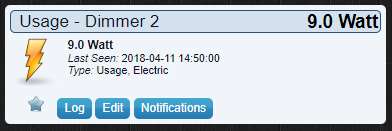 Ik zie hem netjes verschijnen bij mijn apparaten (Aan en Uit, Dimmen, Totaal verbruik en huidig verbruik). Ik zie tevens 2 schakelaars. Helemaal compleet dus.