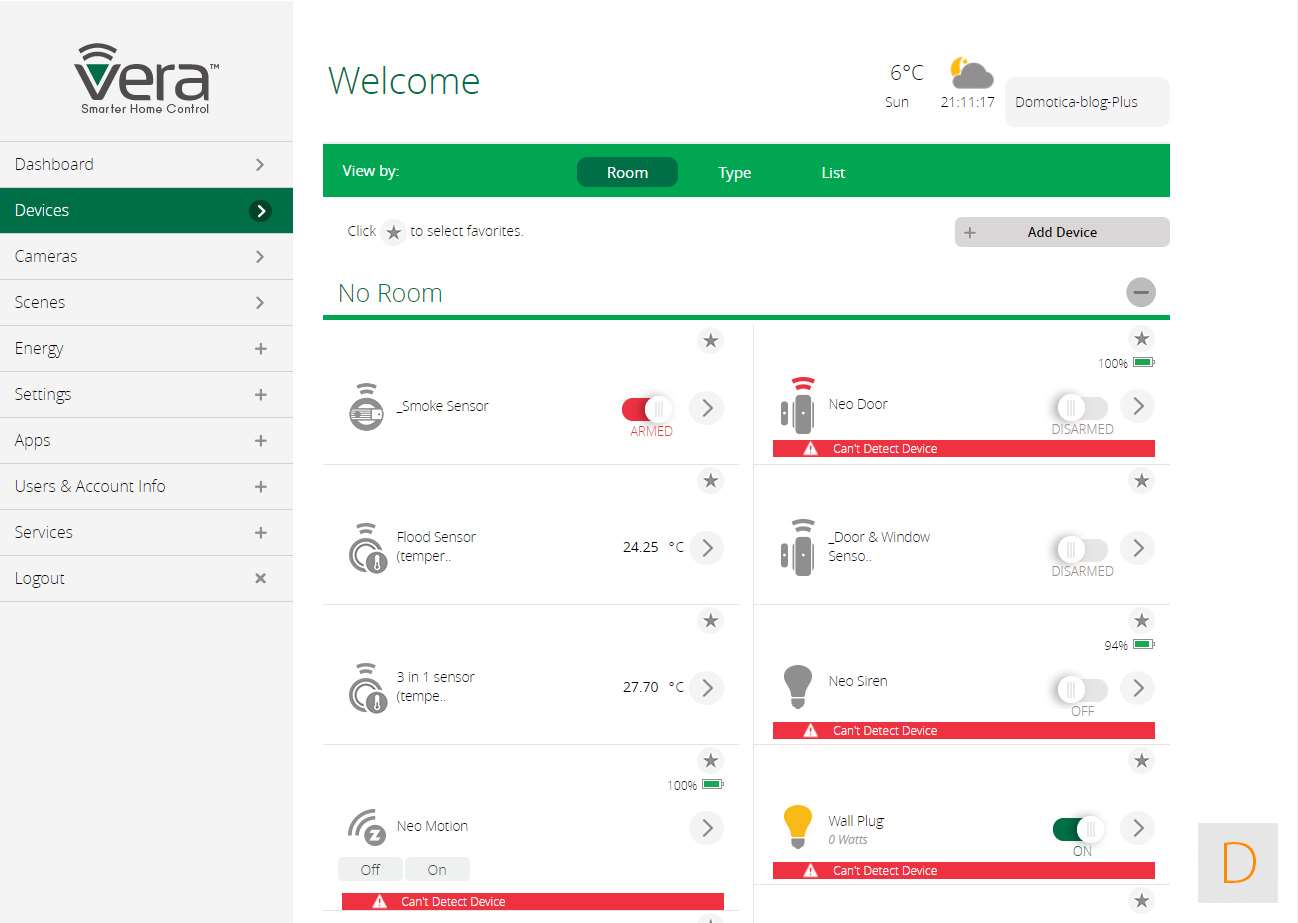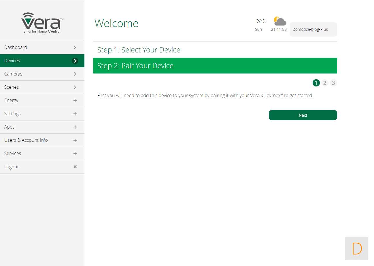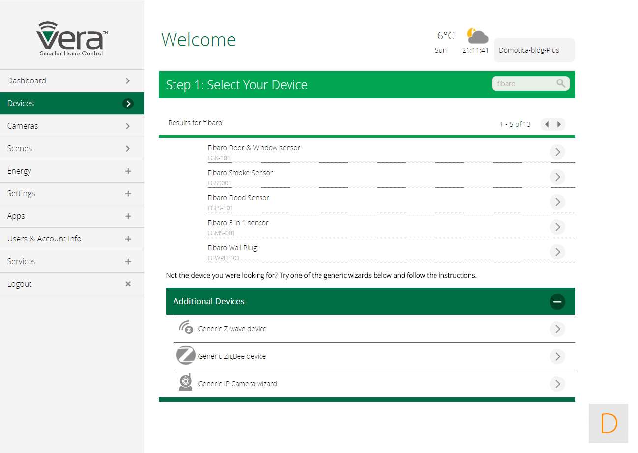 Als laatste in de rij is de Vera Plus aan de beurt. Het toevoegen aan deze controller gaat door in te loggen en naar het "device" gedeelte te gaan. Vervolgens klik ik op "add device" en zoek ik de door/window sensor 2 op. Deze werd helaas niet gevonden maar de versie 1 wel, maar het toevoegen lukt niet met deze versie. Hierna heb ik hem al "Generic Z-Wave" toegevoegd, hier werd deze keer wel gevonden.