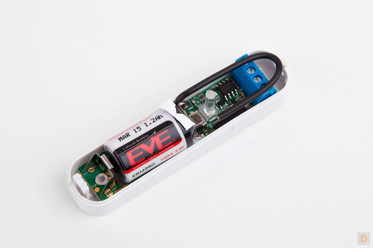 De communicatie gaat via z-wave en hij heeft een bereik van 30 meter binnenshuis (uiteraard afhankelijk van de obstakels). Hij wordt gevoed door een 1/2 AA batterij. Dit is niet heel handig omdat deze niet makkelijk te verkrijgen zijn. Maar hierdoor blijft de sensor wel klein.