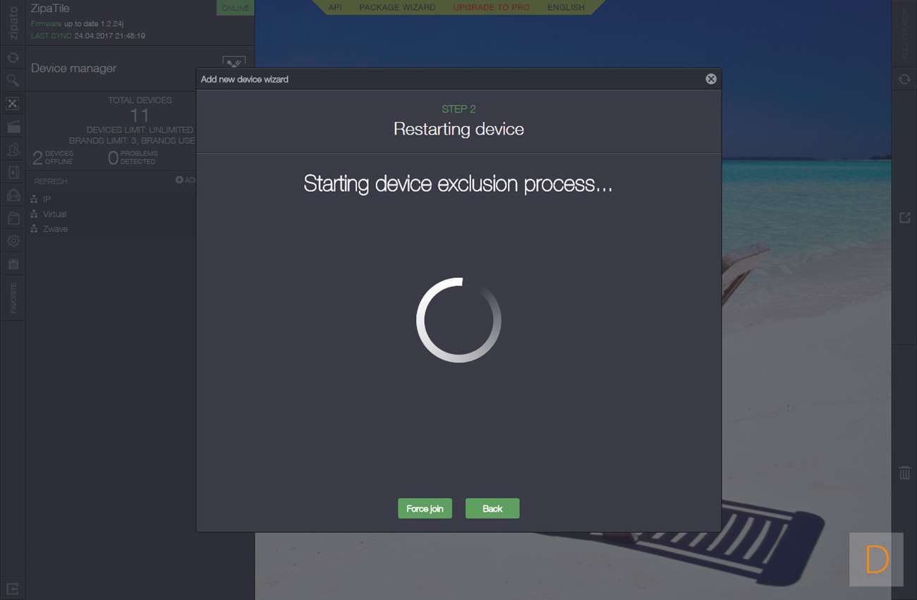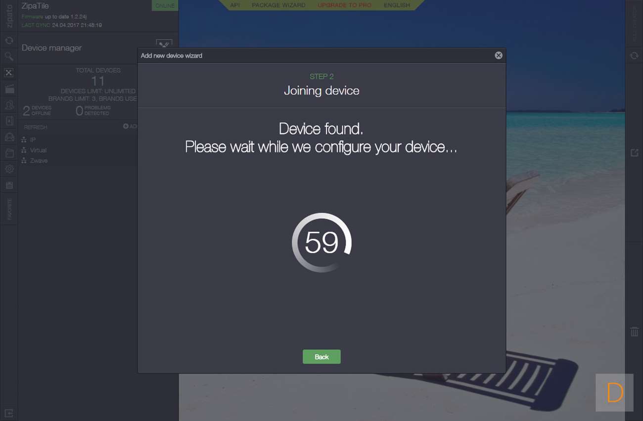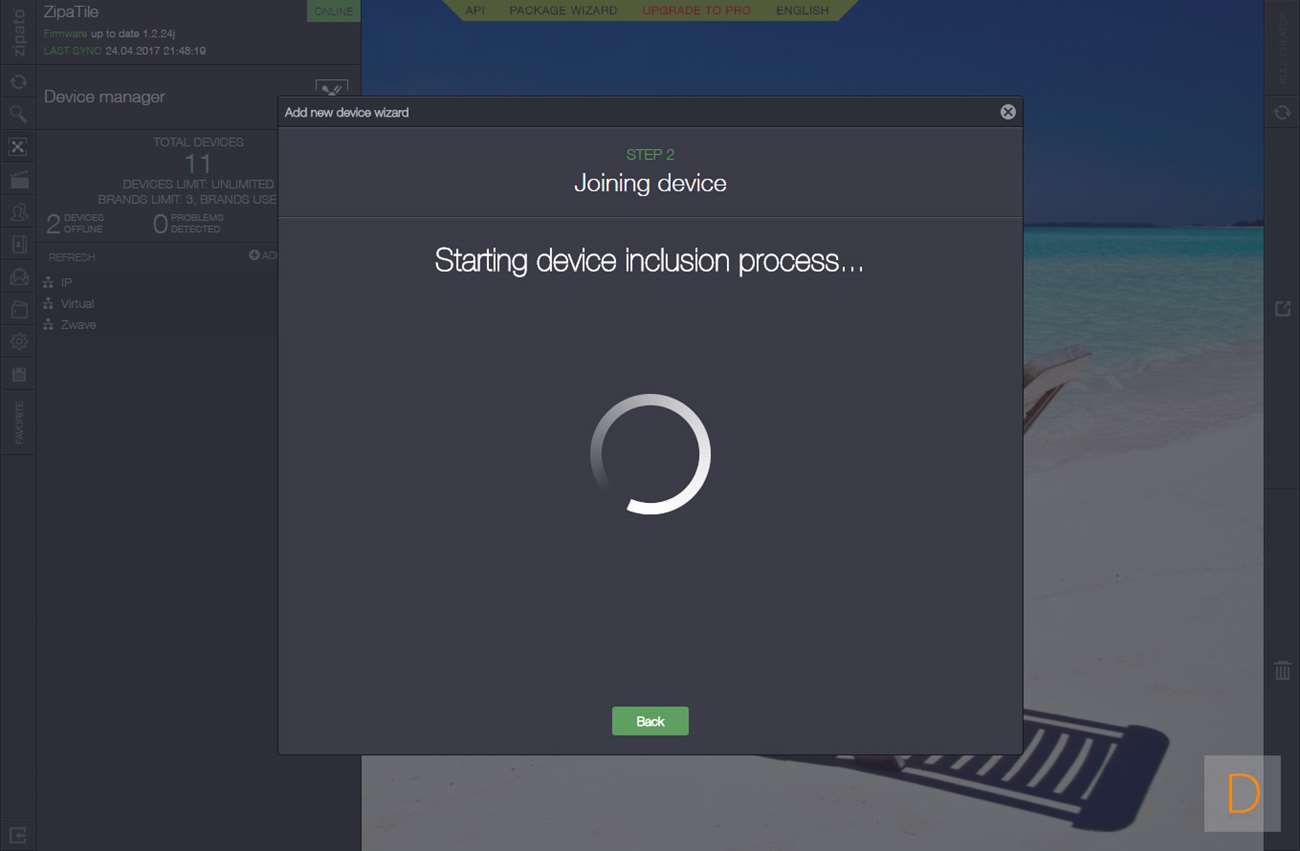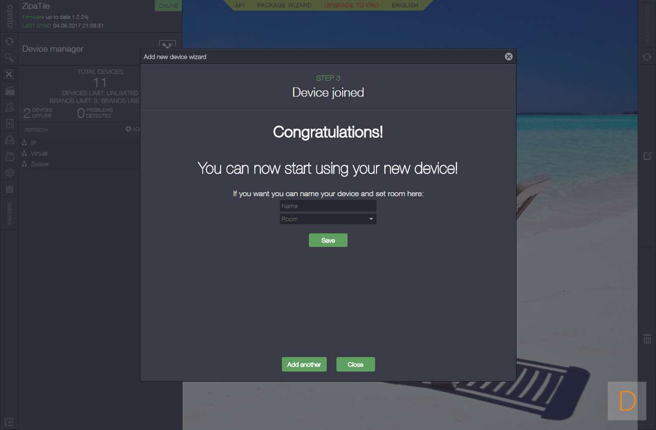 Het toevoegen van de Fibaro door- en window sensor aan de ZipaTile gaat door in te loggen en naar het apparaten gedeelte te gaan. Hierna klik je op "add device" en klik je op Z-wave. Hierna is het een kwestie van het lipje te verwijderen bij de batterij en 3x op de tamper knop te klikken aan de achterkant. Hij zal hierna gevonden en toegevoegd worden. De LED zal aan en uit gaan tijdens het toevoegen. Indien het toevoegen is gelukt zal deze blauw gaan knipperen. Zorg altijd dat je dicht in de buurt bent van de controller.