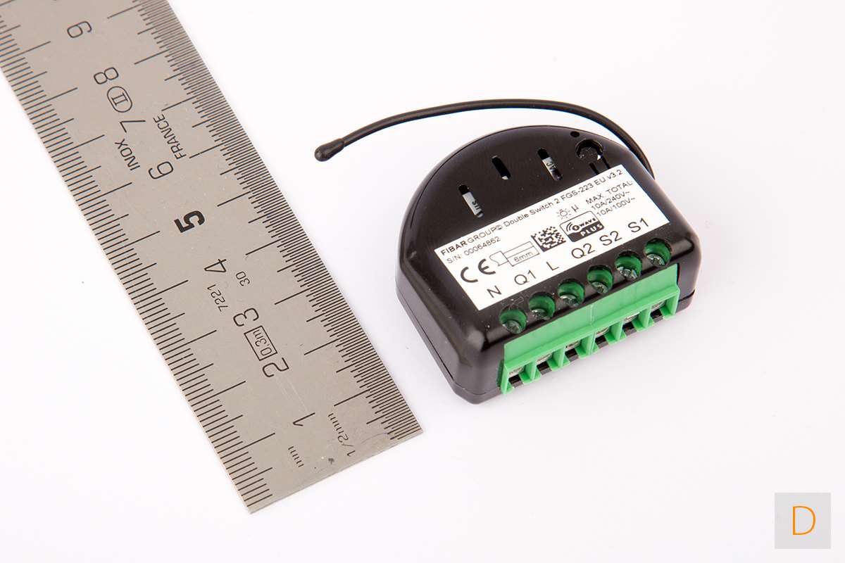 De afmetingen van deze module zijn 42,5 x 38,25 x 20,3 mm (L x B x H), wat best klein is. Vergeleken met de oude versie is hij wat ronder en waar de schroeven zitten is hij wat hoger. Hij past in ieder geval prima in een inbouwdoos van 50mm diep. De concurrent van deze module de Qubino is wel wat compacter.