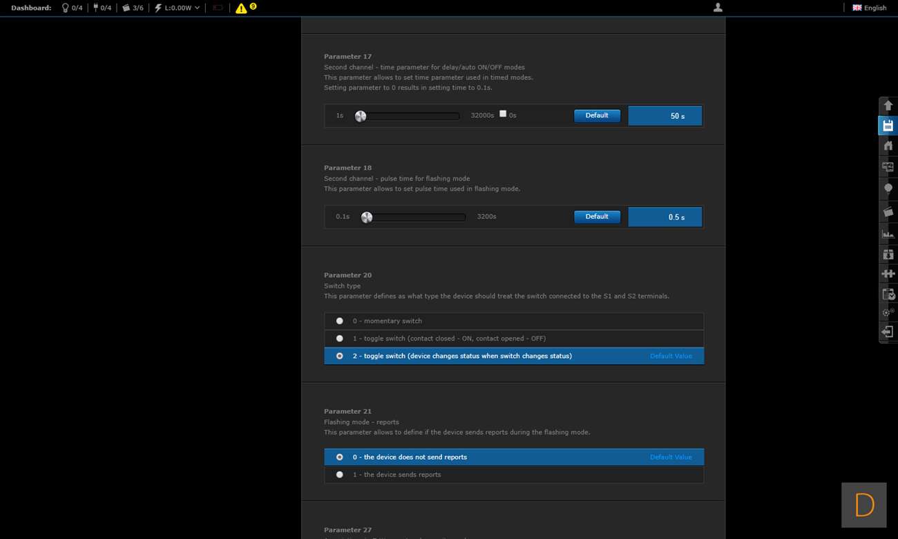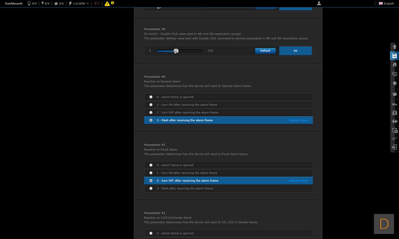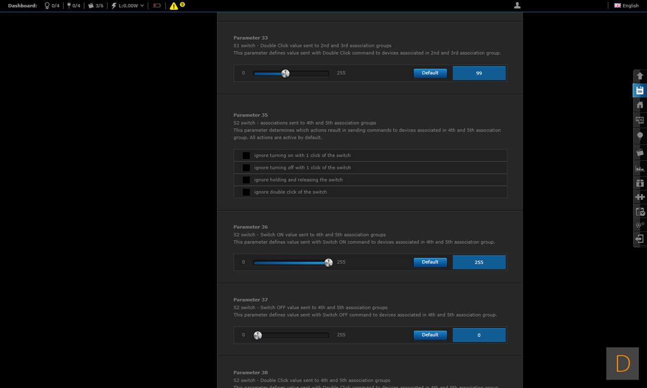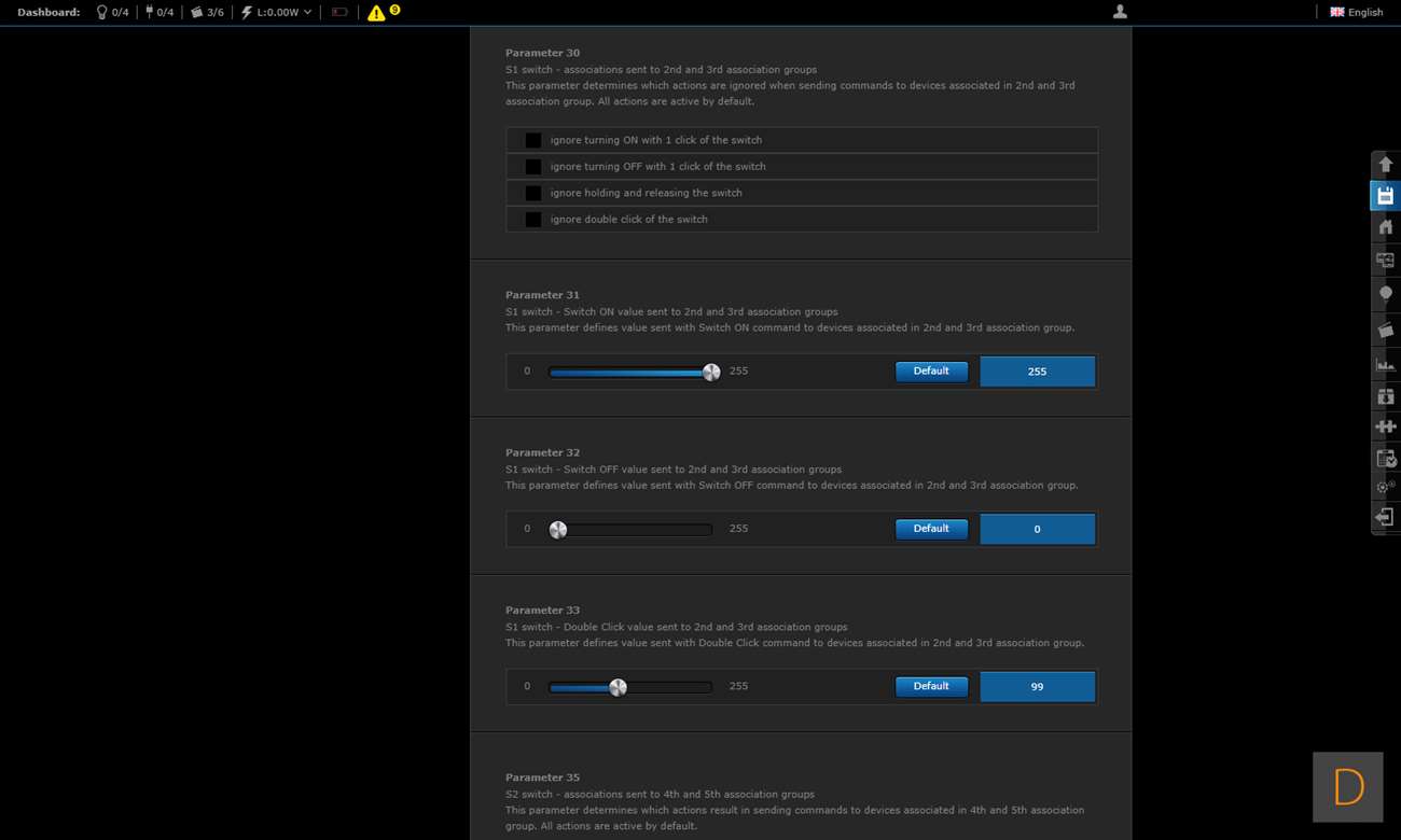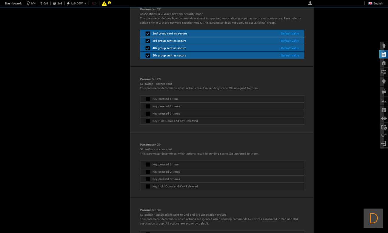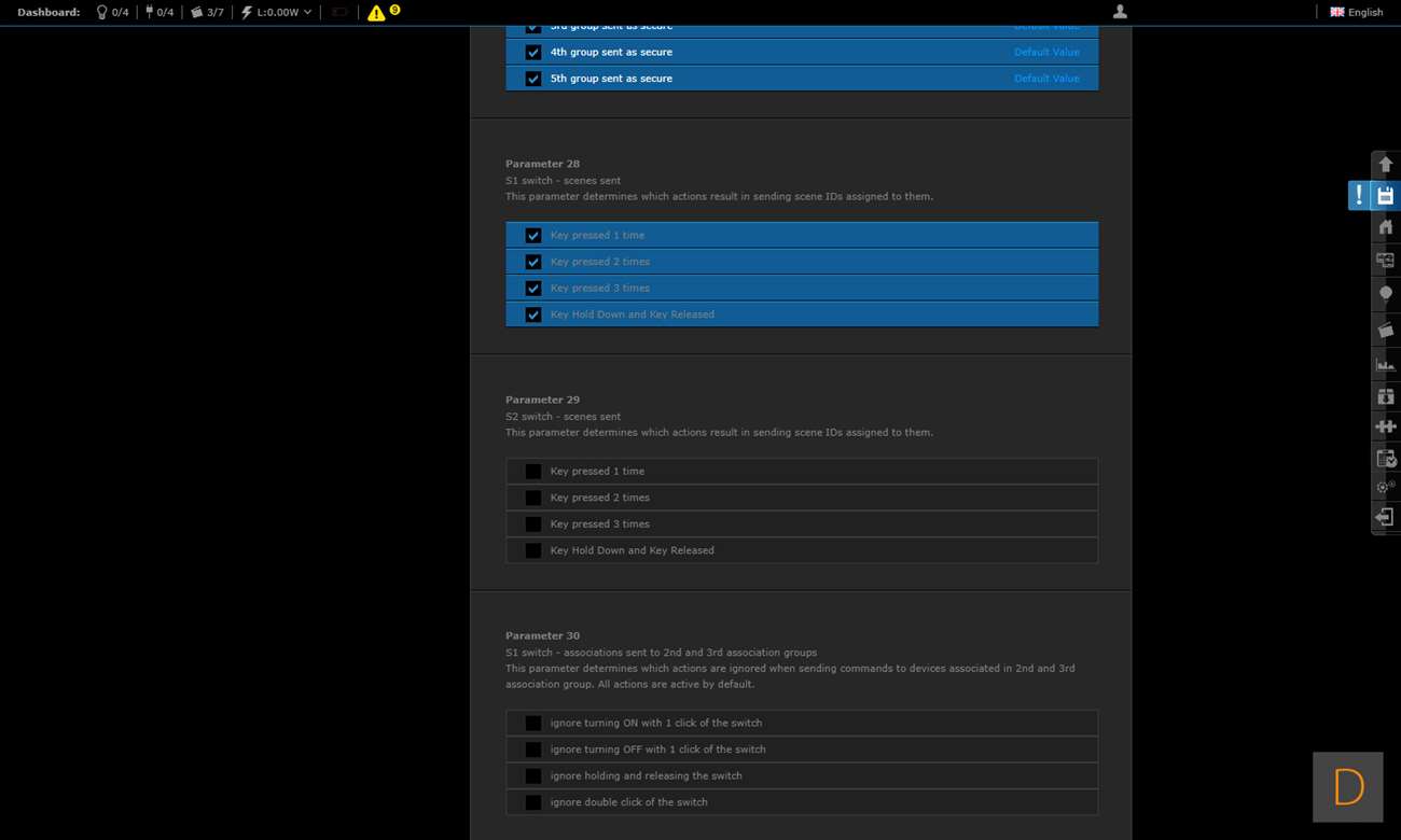 Om gebruik te maken van scenes optie moet je parameter 28 aanzetten. Je kunt hierna bv in een scene gebruiken dat als je 2x op de schakelaar klikt, een scene gaat starten om bv een andere lamp aan te zetten.