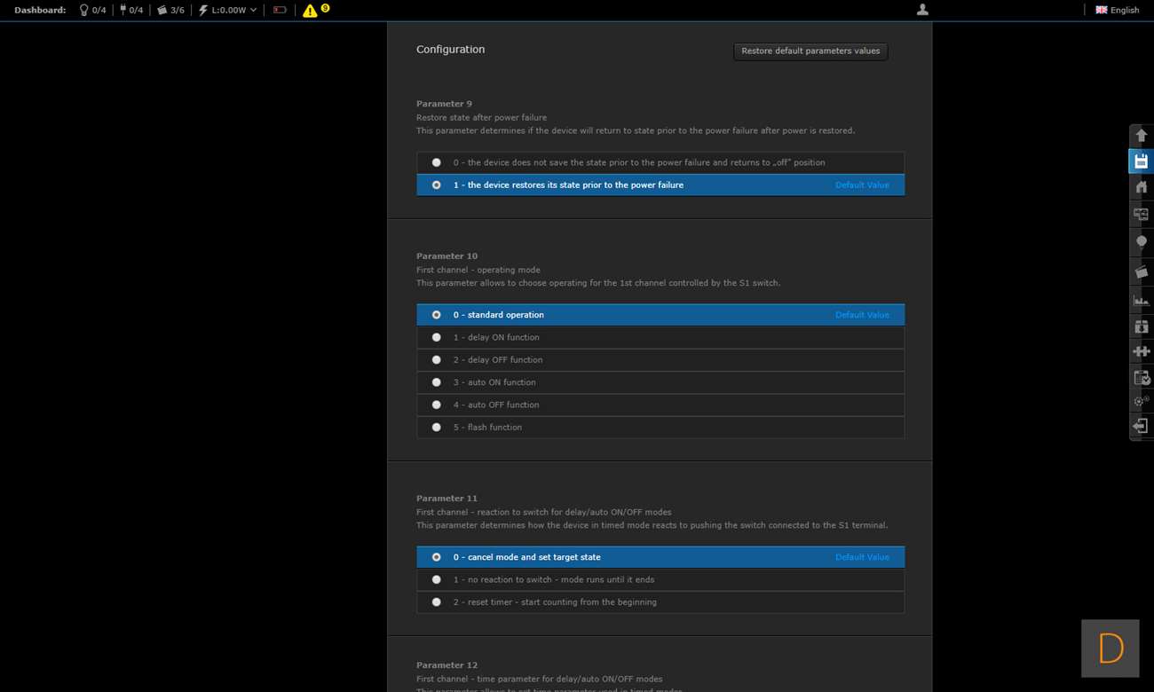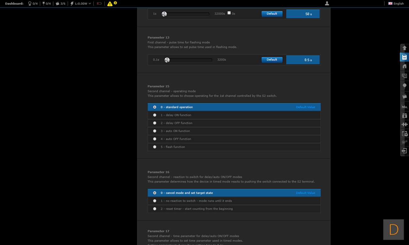 Alle configuratie mogelijkheden zijn aanwezig (in tegenstelling tot andere controllers). Zoals verwacht werkt deze schakelaar perfect.