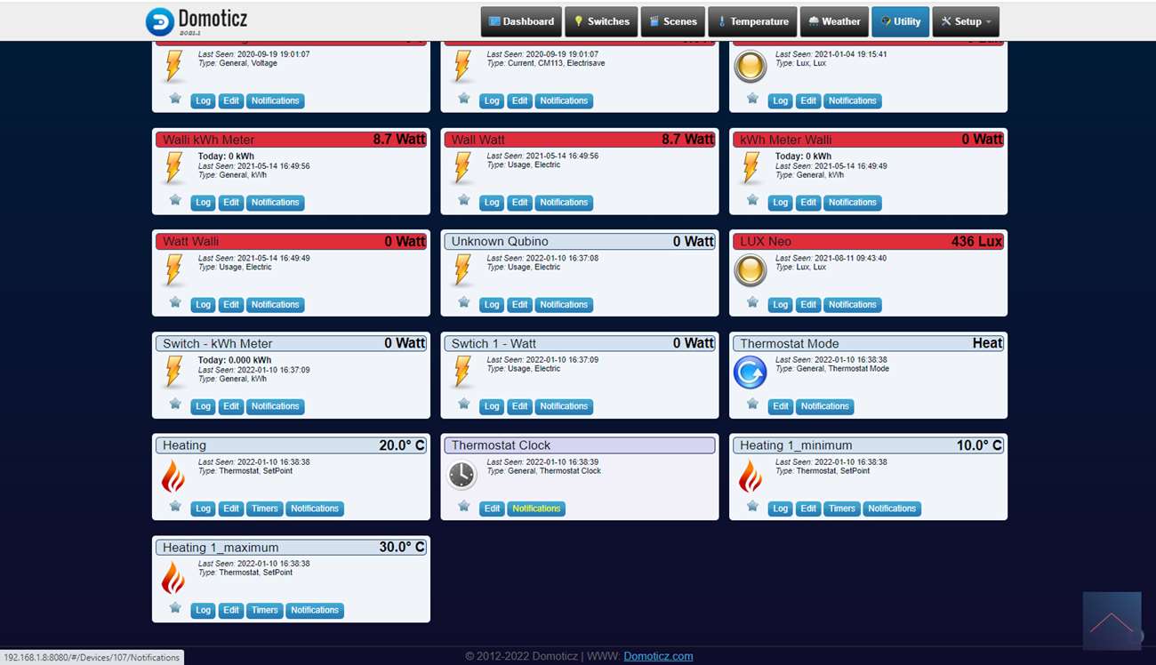We zien de temperatuur van de sensor, kunnen de temperatuur van de CV instellen, het modus kunnen we wijzigen (uit, verwarmen en beveiligd). Helaas zien we niet het batterijniveau.