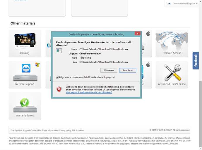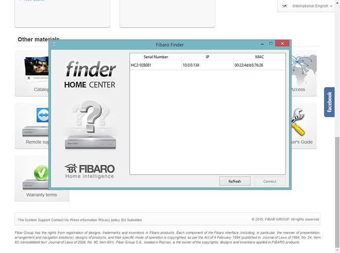 Vervolgens ga je naar de website van Fibaro om de HC2 finder te downloaden (Windows en Mac). Met dit programma vindt hij automatisch je HC2. Even in je router kijken om het ip-adres op te zoeken kan natuurlijk ook.