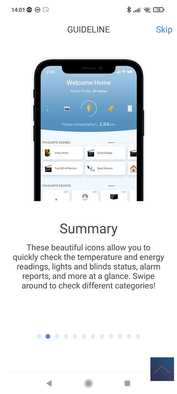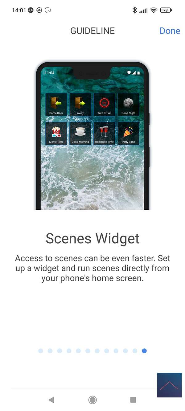 De APP zit best logisch in elkaar en het aan/uitzetten van een apparaat werkt goed. Dat je direct een scene kan opstarten is ook een fijne toevoeging. Het aan/uitzetten van je alarm is ook aanwezig en is direct beschikbaar na het opstarten.