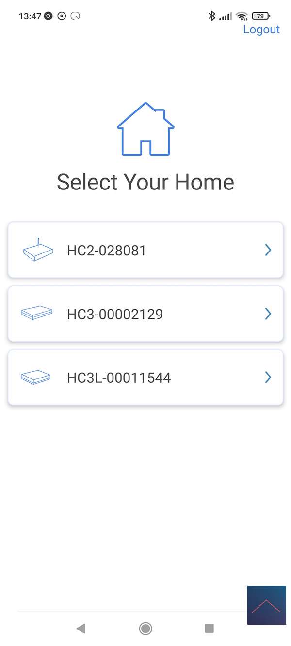 Als je bent ingelogd moet je even je HC3 Light selecteren zodat hij verbinden kan maken.