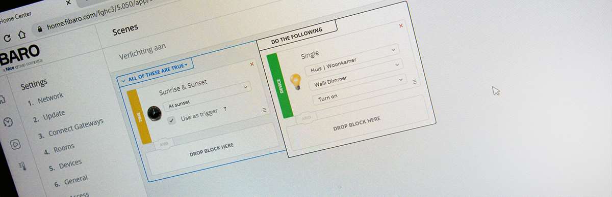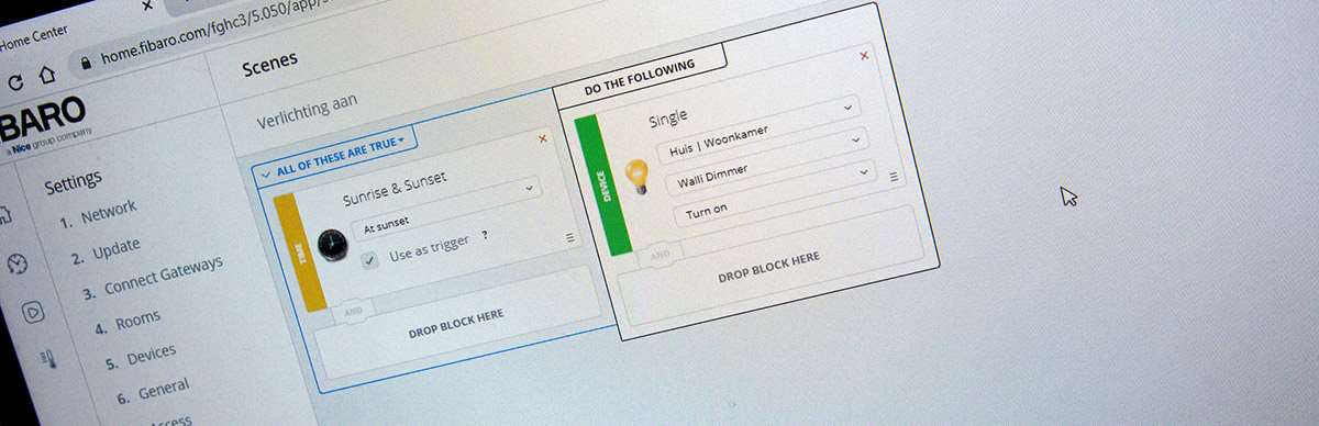 We hebben nu een aantal apparaten toegevoegd dus is het tijd om ons huis echt slim maken. Dit kun je mogelijk maken door middel van scenes. Dit zijn regels met voorwaarden welke uitgevoerd moeten worden.