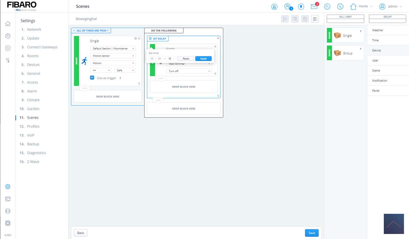 Nu zal je misschien af vragen maar wat moet ik nou hiermee. Ik zal een voorbeeld geven. Stel je heb een scene die 1x per dag de verwarming moet aanzetten in de schuur maar je wilt dit alleen maar als er iemand/beweging is in de schuur. Deze eenmalige opwarming is voldoen voor de hele dag. Uiteraard is dit een voorbeeld want er zijn meerdere wegen naar Rome :)