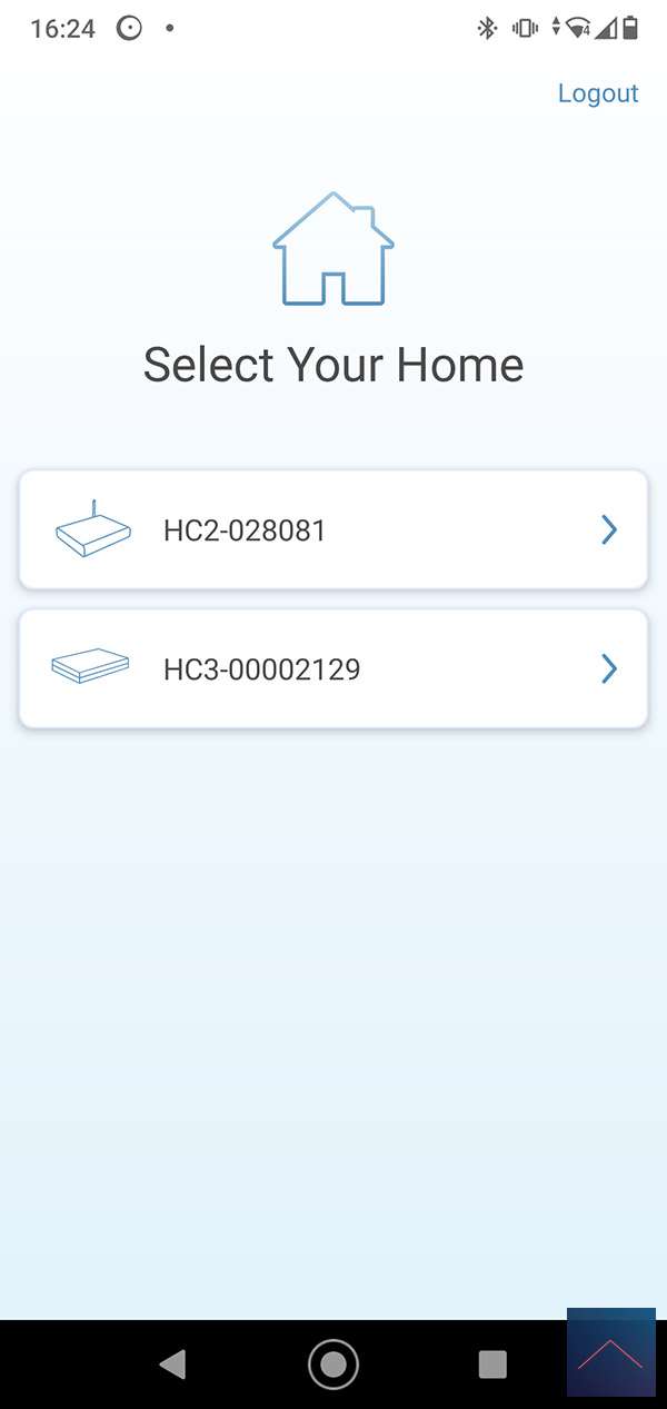 Als ik ben ik ben ingelogd moet je even je HC3 selecteren zodat hij verbinden kan maken.