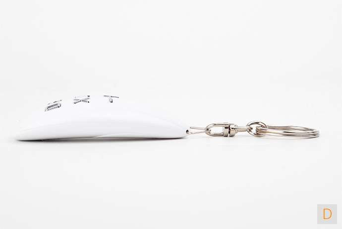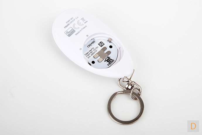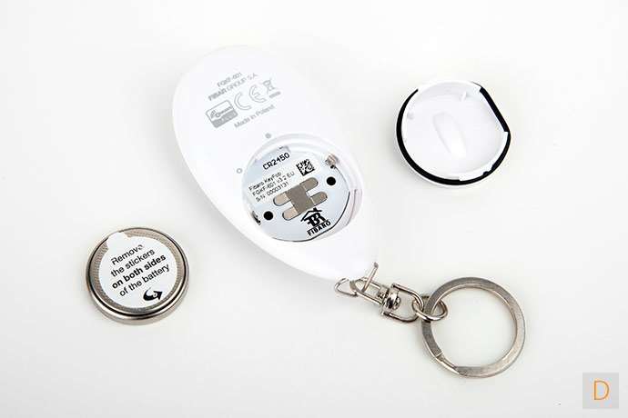 Deze afstandsbediening is zeer compact met zijn 70x38x17 mm (lxbxh). Er zit een kettinkje aan, met een ring, zodat je hem aan je sleutelbos kunt hangen. Hij is glad afgewerkt en voelt solide aan en wordt gevoed door 1 CCR2450 batterij. Volgens Fibaro moet deze 2 jaar meegaan.