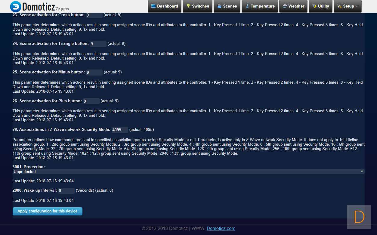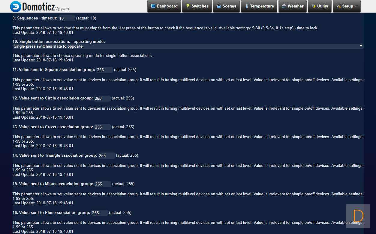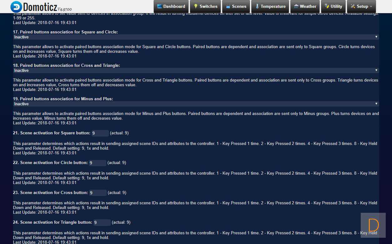 Als ik een knop in druk komt er alleen maar een "on" signaal binnen. Er is ook geen mogelijk om de dubbel en trippel klik actie te registeren. Hierdoor zijn de mogelijkheden wat beperkt. Wil je toch alle functies en knoppen gebruiken dan zul je de keyfob rechtstreeks aan een schakelaar moeten koppelen. Kijk in de handleiding hoe dit moet.