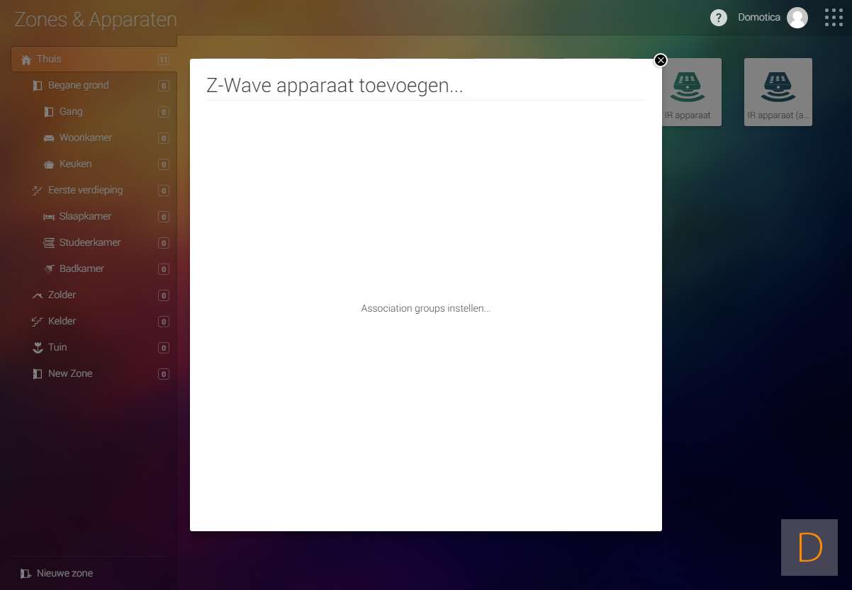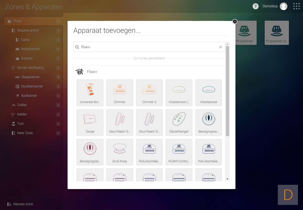 Het toevoegen ging niet helemaal zonder problemen. Ik moest een paar keer achter elkaar op de knop drukken om hem toegevoegd te krijgen. Uiteindelijk werd hij gevonden en zijn de verschillende configuratie mogelijkheden aanwezig.