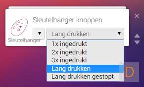 Als je gebruik wilt maken van de 2 of 3 keer achter elkaar indrukken moet je wat wijzigen in de configuratie van de KeyFob. Dit kun je doen door naar je apparaten te gaan en op het icoontje van de sleutel te klikken bij de KeyFob. Vervolgens klik je op "knoppen instelling" en selecteer je welke optie je wilt. Let wel op dat hierdoor de KeyFob wat trager reageert.