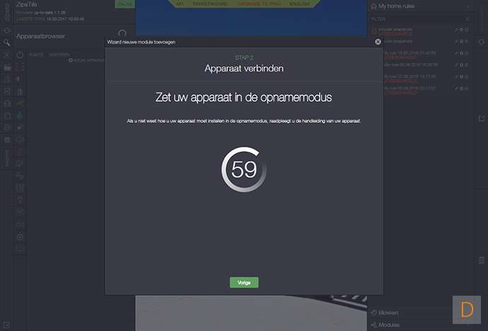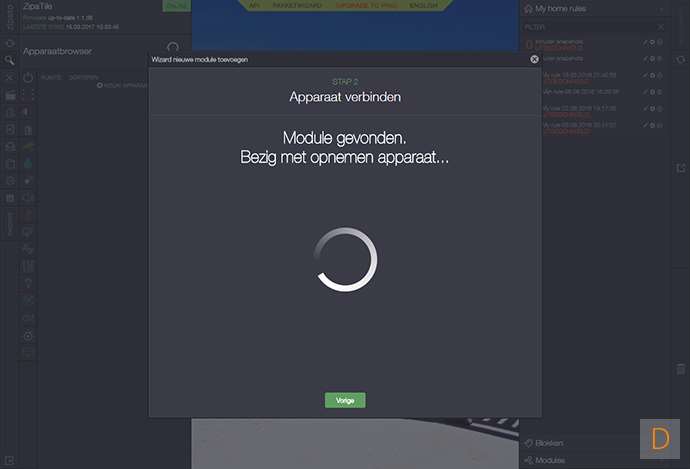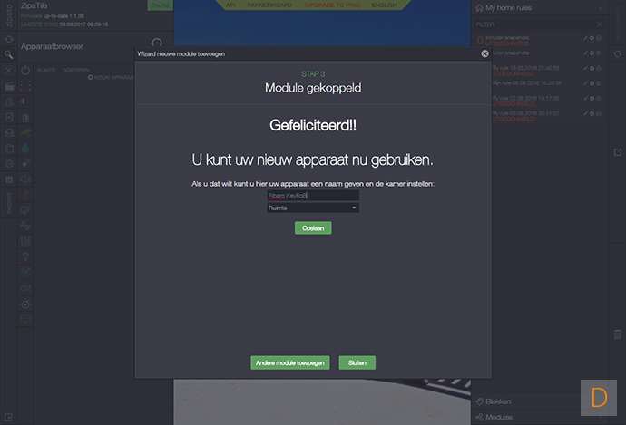 Het toevoegen ging niet helemaal zonder problemen. Ik moest een paar keer achter elkaar op de knop drukken om hem toegevoegd te krijgen. Uiteindelijk werd hij netjes gevonden en zijn alle configuratie mogelijkheden aanwezig.