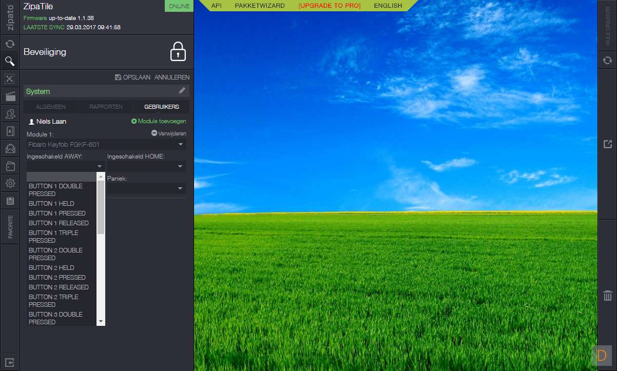 Deze KeyFob is ideaal om je alarm aan- of uit te zetten. We zouden dus een regel kunnen maken om hem aan- of uit te zetten. Dit is alleen niet nodig omdat Zipato een standaard alarm paneel heeft.