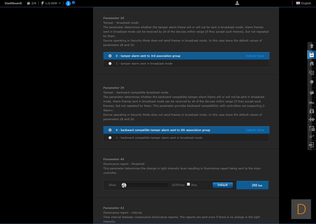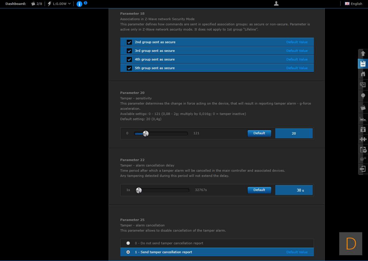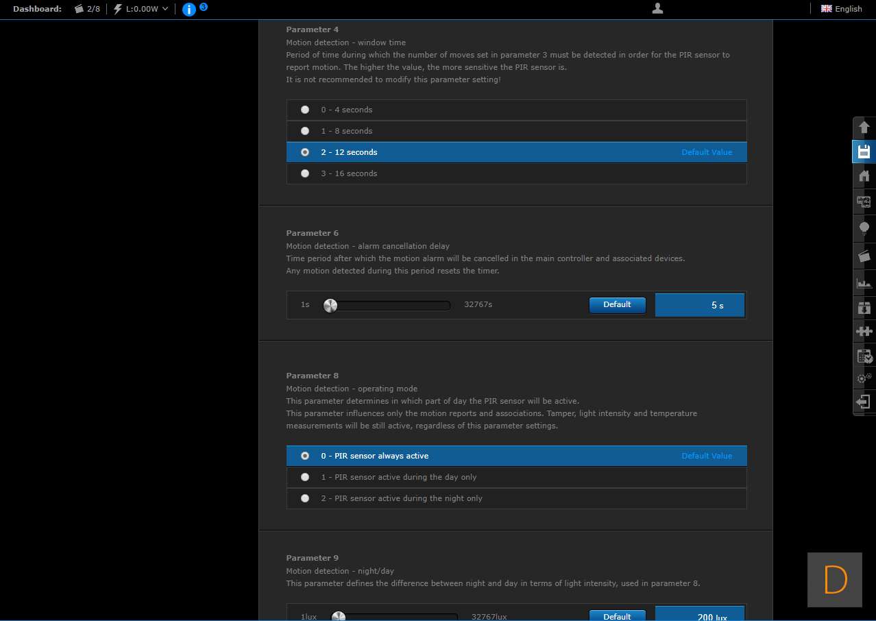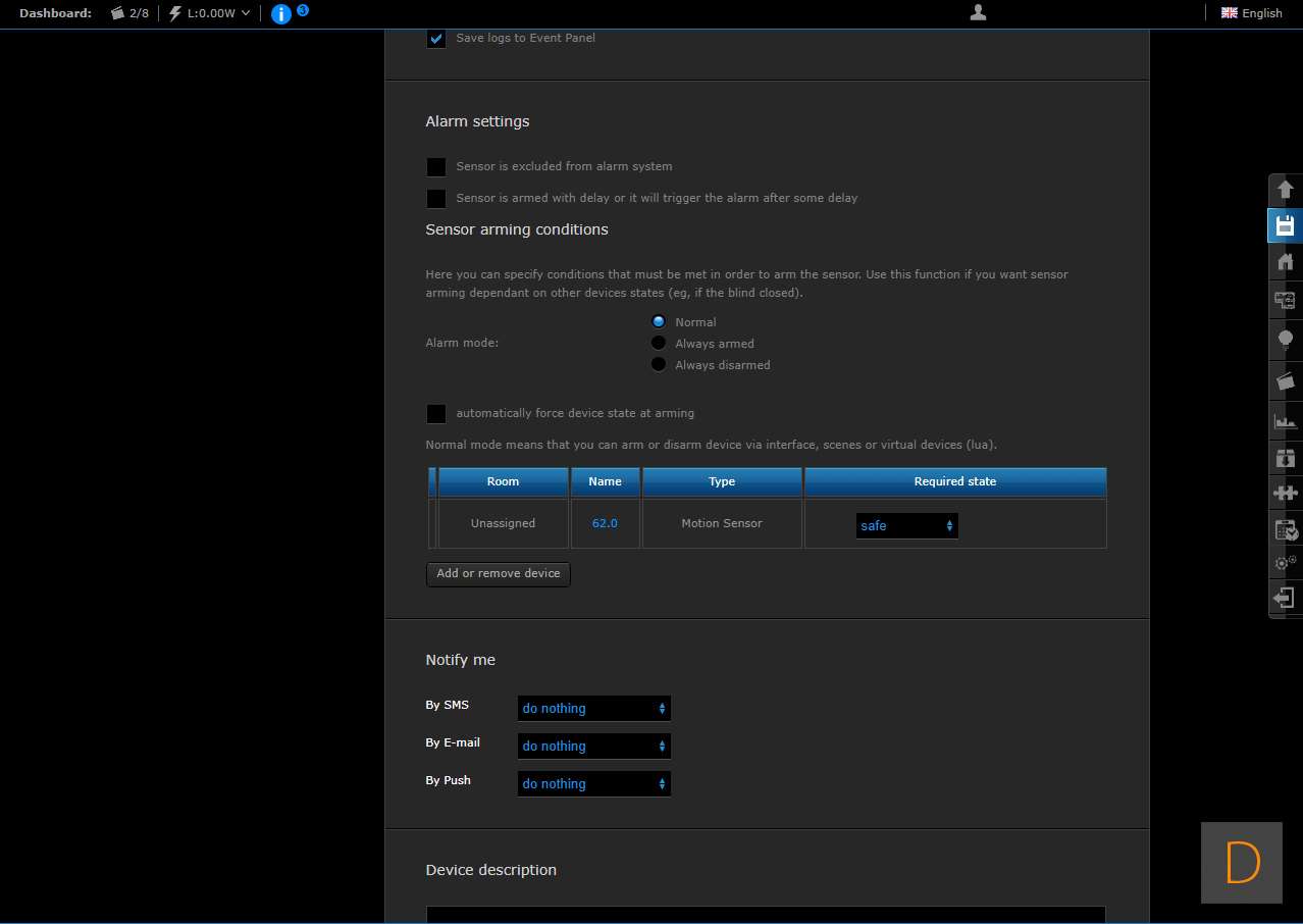Om het toevoegen te starten log je in op je Home Center. Vervolgens ga je naar het device gedeelte en klik je op "add or remove device" en vervolgens op de "add" knop. Het aftellen zal beginnen. Hierna is het een kwestie van de sensor open te draaien en het lipje bij de batterij te verwijderen. Je kunt het toevoegen starten door 3 keer snel achter elkaar op de (b) knop te drukken. Zorg altijd dat je dicht bij de controller bent als je gaat toevoegen. Hij werd netjes gevonden en toegevoegd aan de HC2. Ik zie ook alle opties en configuratie mogelijkheden.