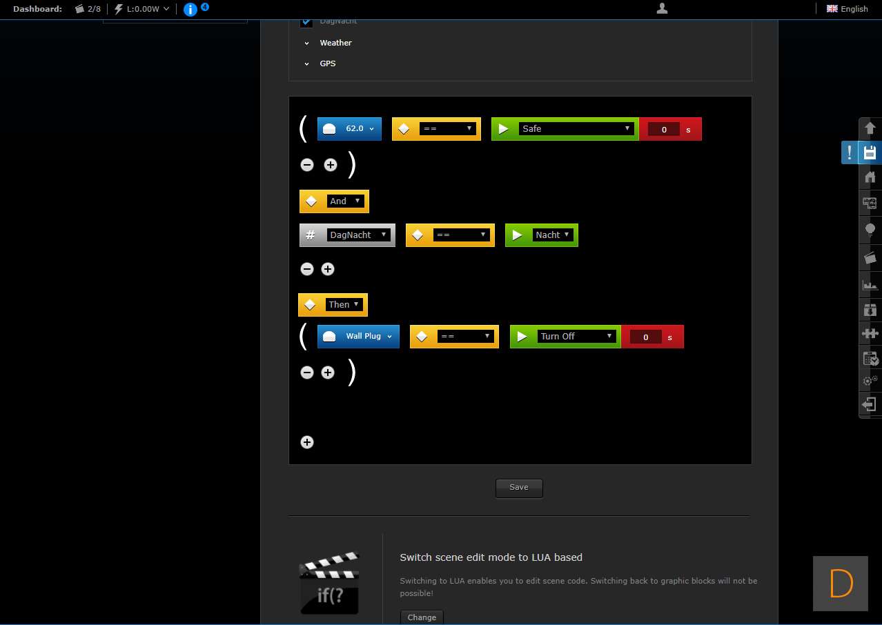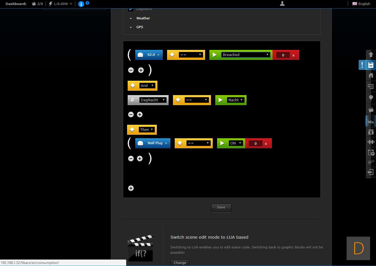 Omdat ik wil dat deze regel alleen draait als het donker genoeg is in huis maak ik een regel om hier voor te zorgen. Ik maak hierbij van mij bestaande Sunset/Sunrise regel. Deze kun je vinden bij ROBBshop: https://www.robbshop.nl/domotica/het-fibaro-systeem/fibaro-tips-en-tricks/dag-nacht-scene-maken-met-lua