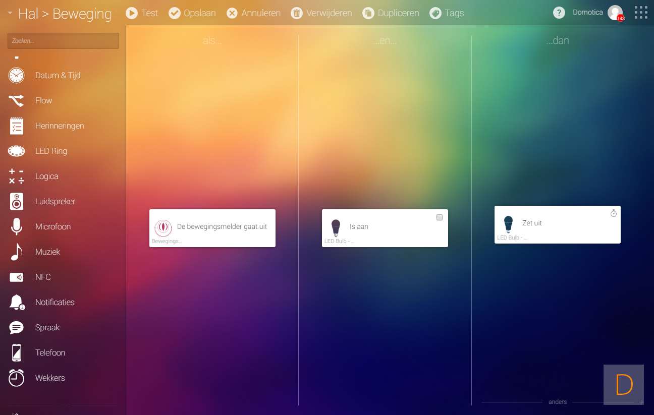 Hierna maak ik nog een flow om te zorgen als er geen beweging is dat de lamp ook weer uitgaat.