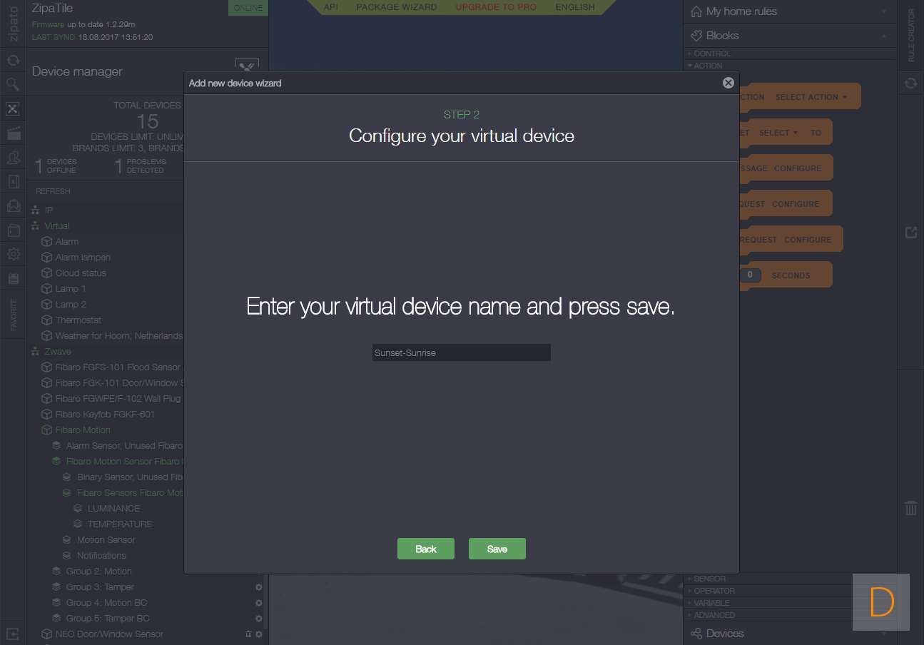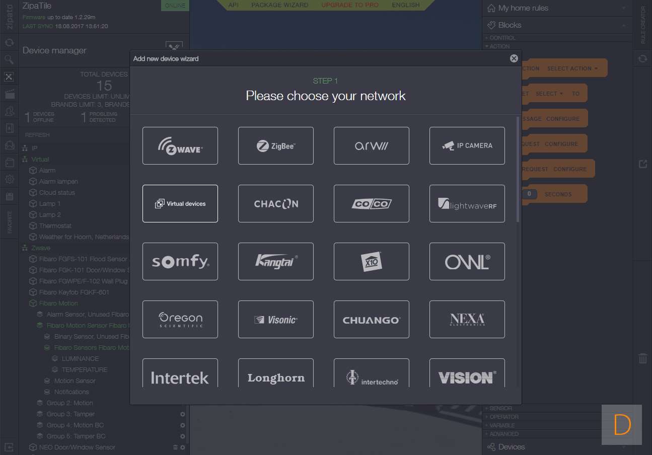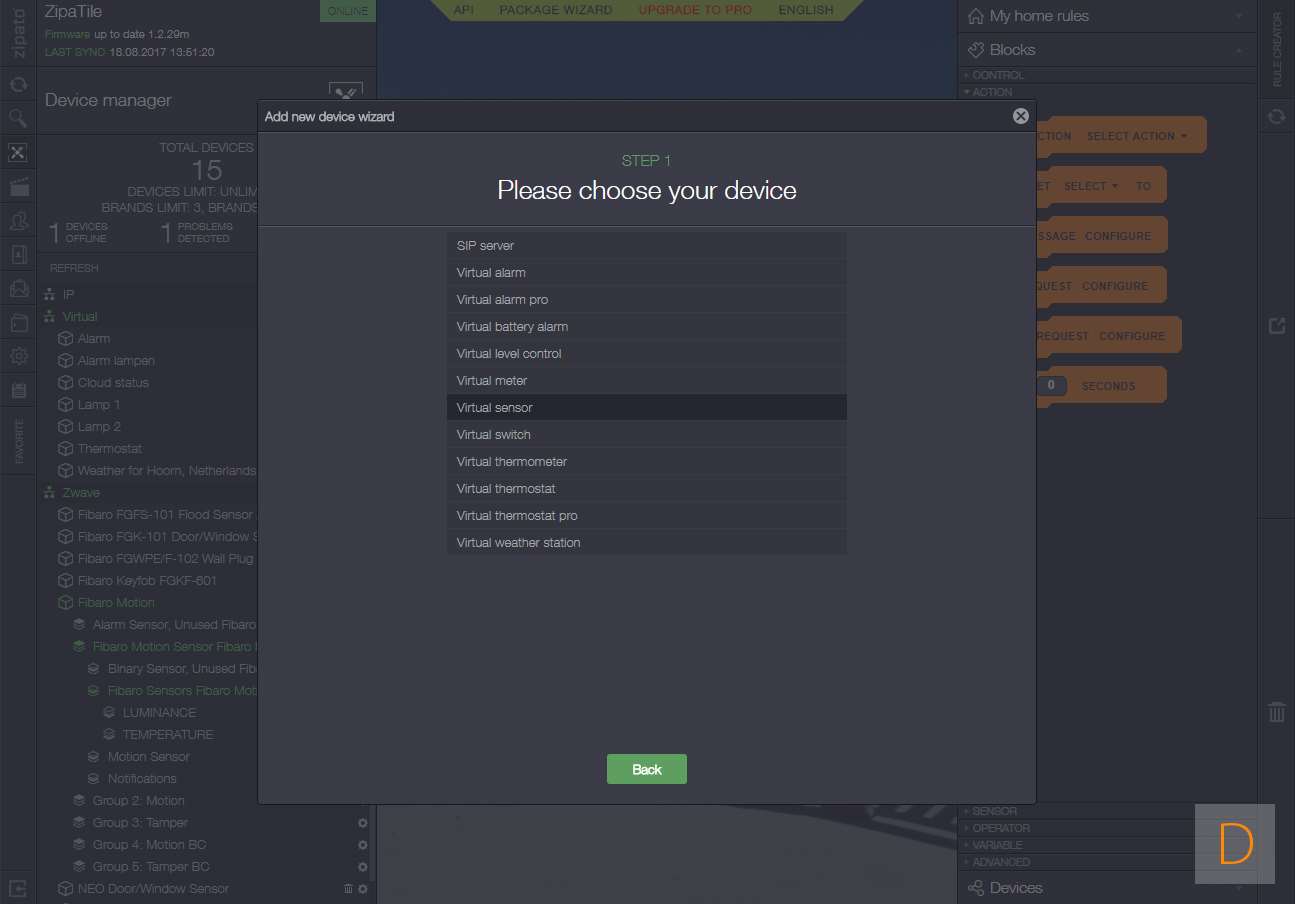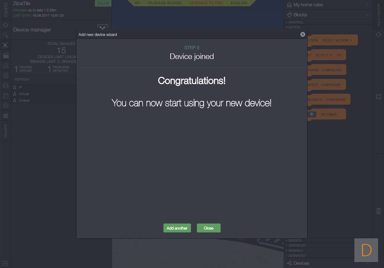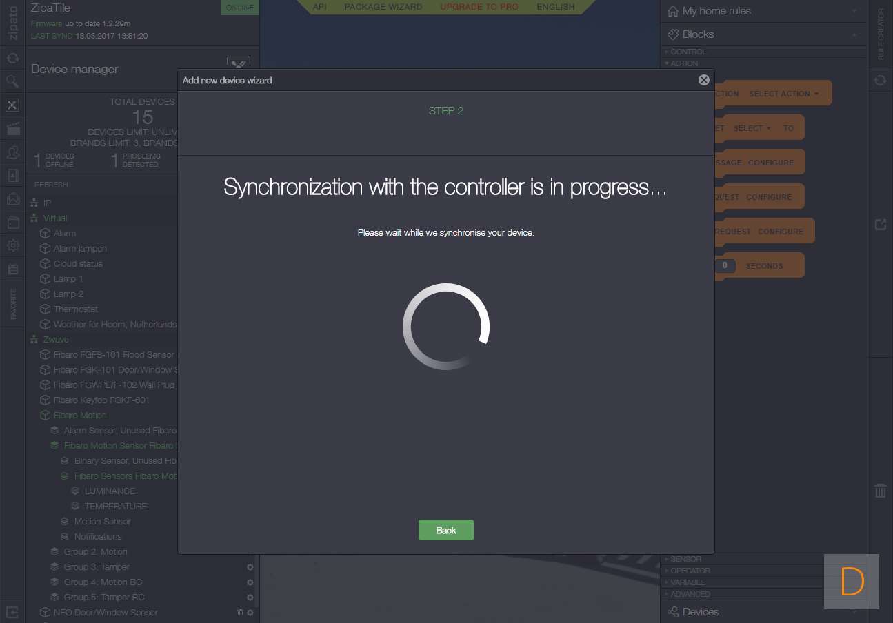 De volgende controller is de ZipaTile. Het toevoegen van deze sensor moet niet zo'n probleem zijn aangezien de ondersteuning altijd wel prima op orde is.