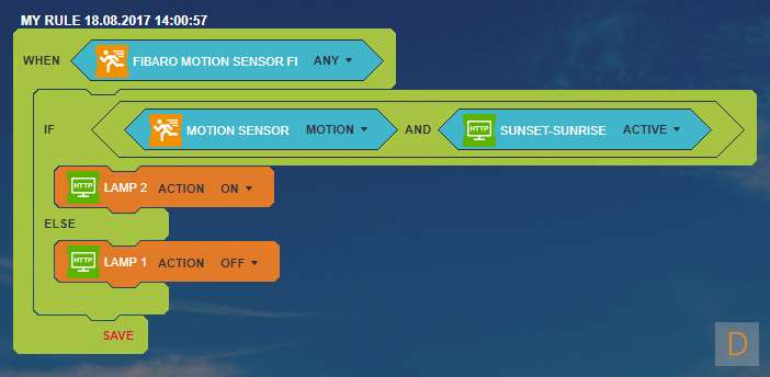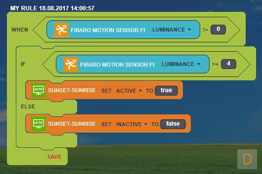 Vervolgens maak ik een regel voor het aan- en uitzetten van de lamp: