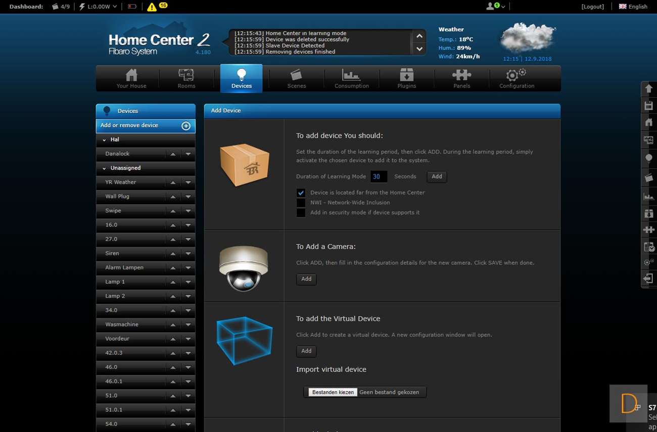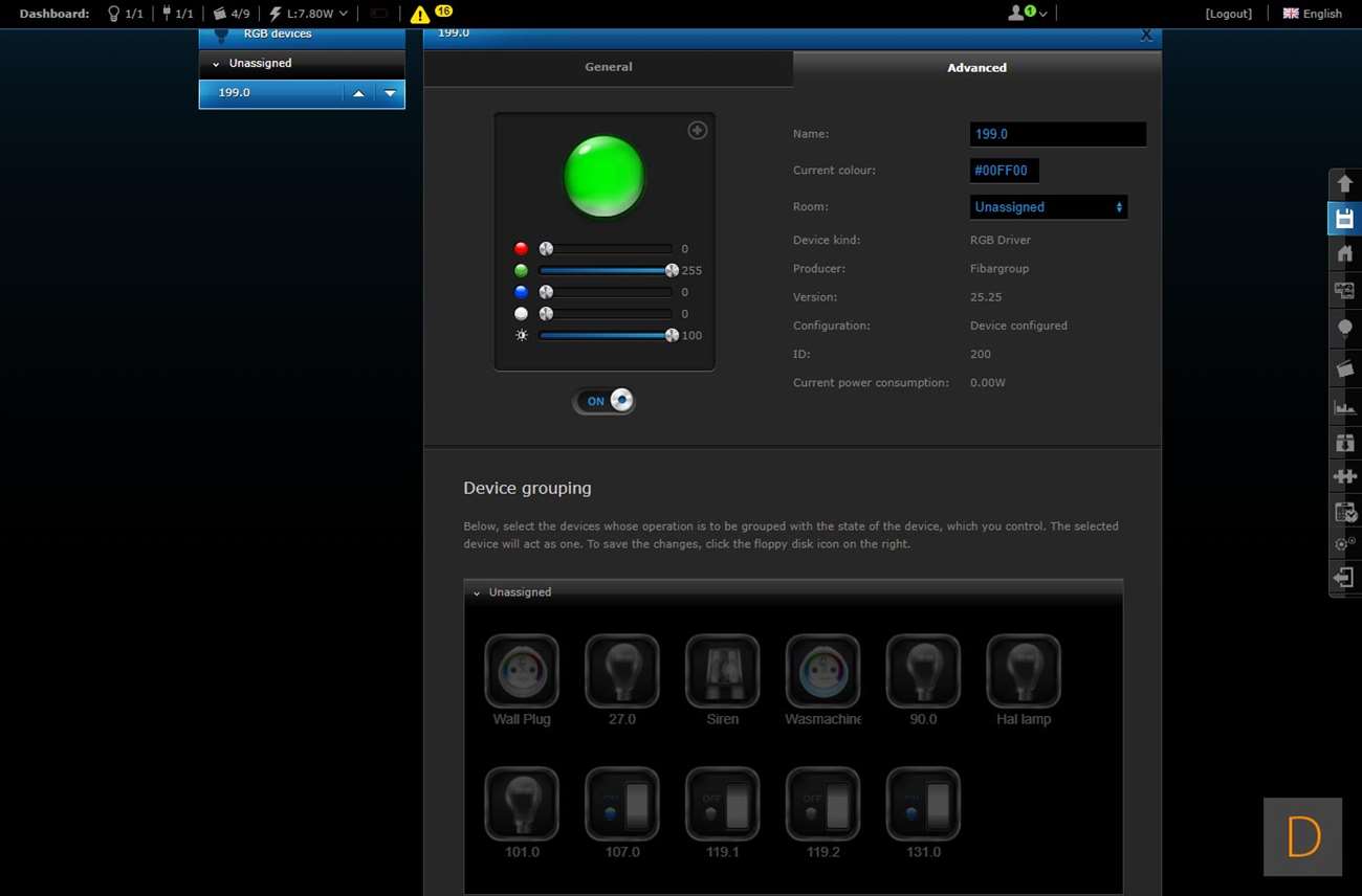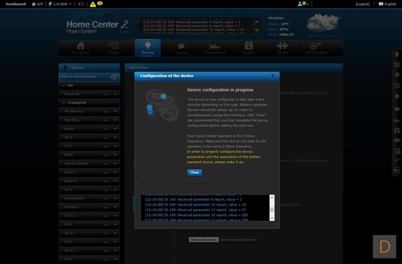 Dit product is van Fibaro, dus het toevoegen zou geen enkel probleem moeten zijn. We gaan zien of dit ook het geval is. Je kunt het toevoegen starten door in te loggen op de HC2 en vervolgens te gaan naar je apparaten. Hierna druk je op "add or remove devices" en vinkje "Add in security mode if device supports it" aan. Om het toevoegen echt te starten druk je op "Add" en voorzie je de RGBW van stroom. Hij zal vrijwel direct gevonden worden. Mocht dit niet het geval zijn dan druk je 3x op het "B" knopje aan de voorkant. Als het toevoegen is gelukt zullen de LED's groen oplichten.