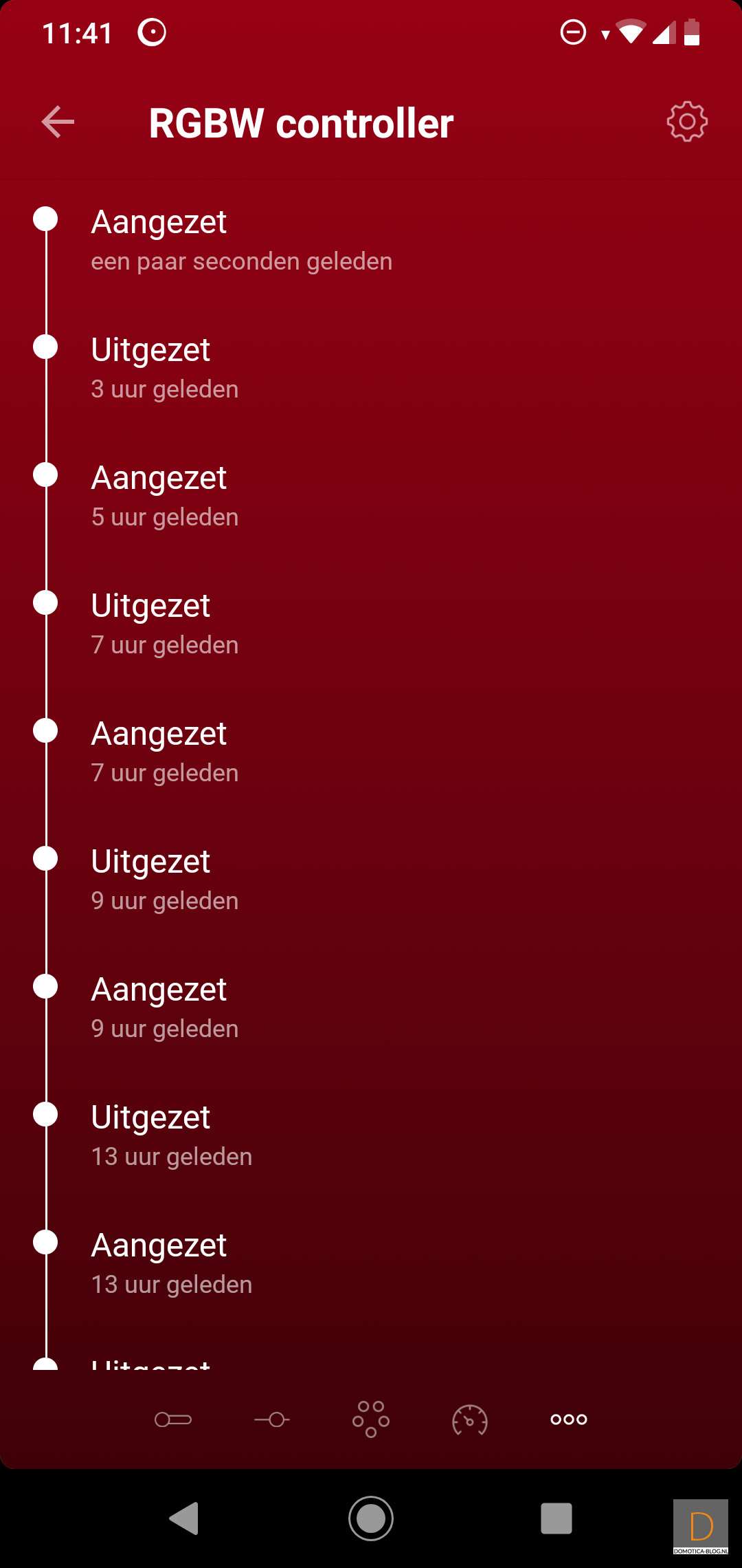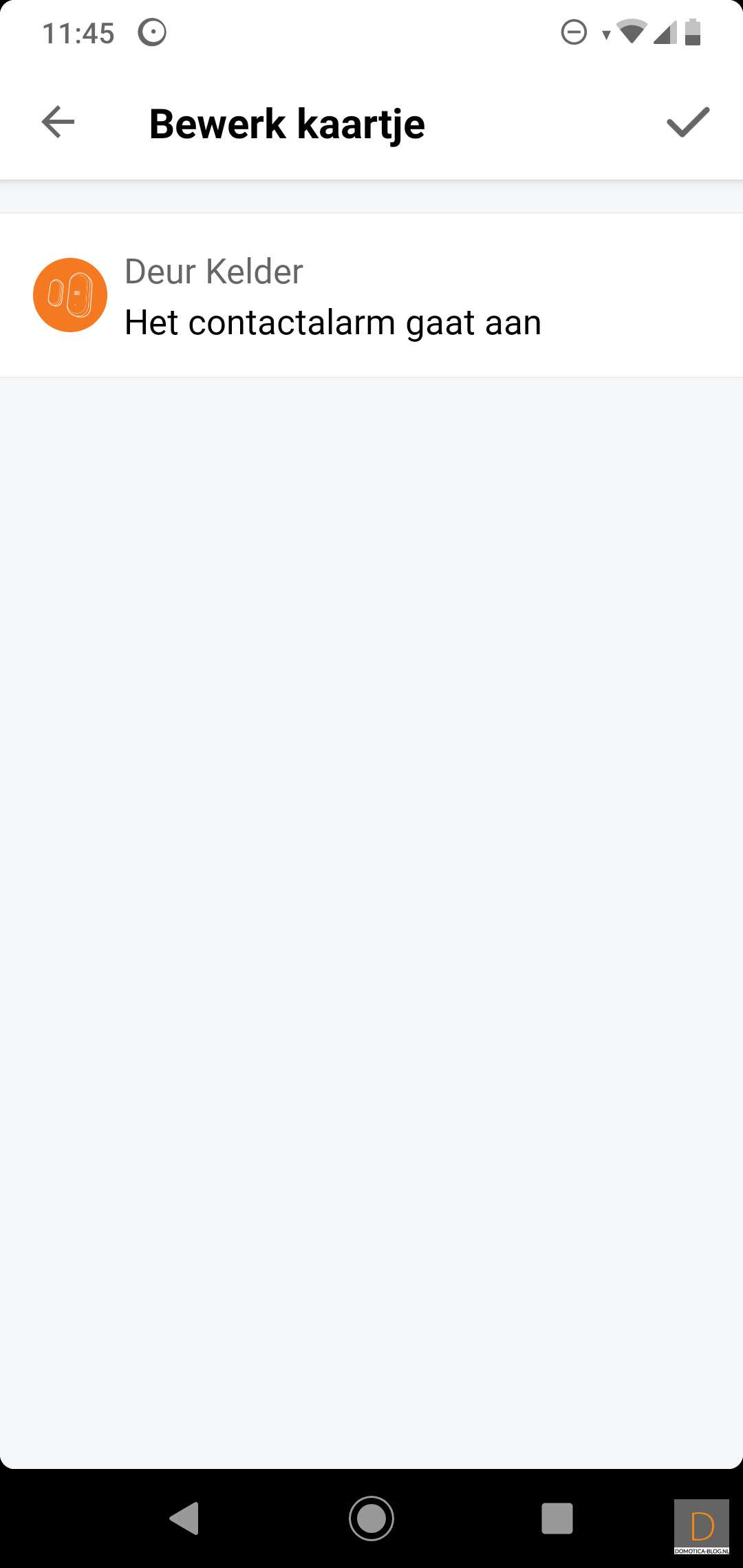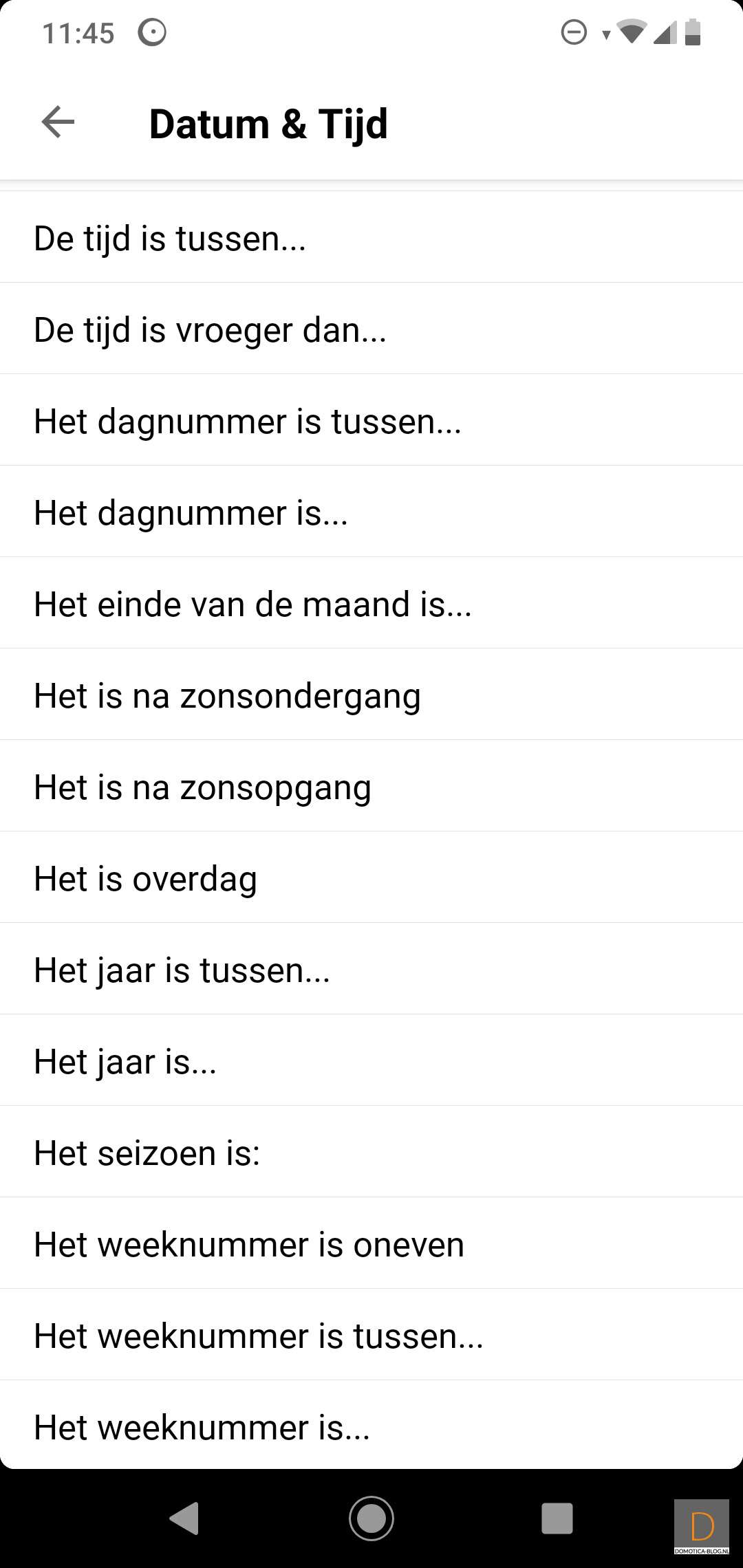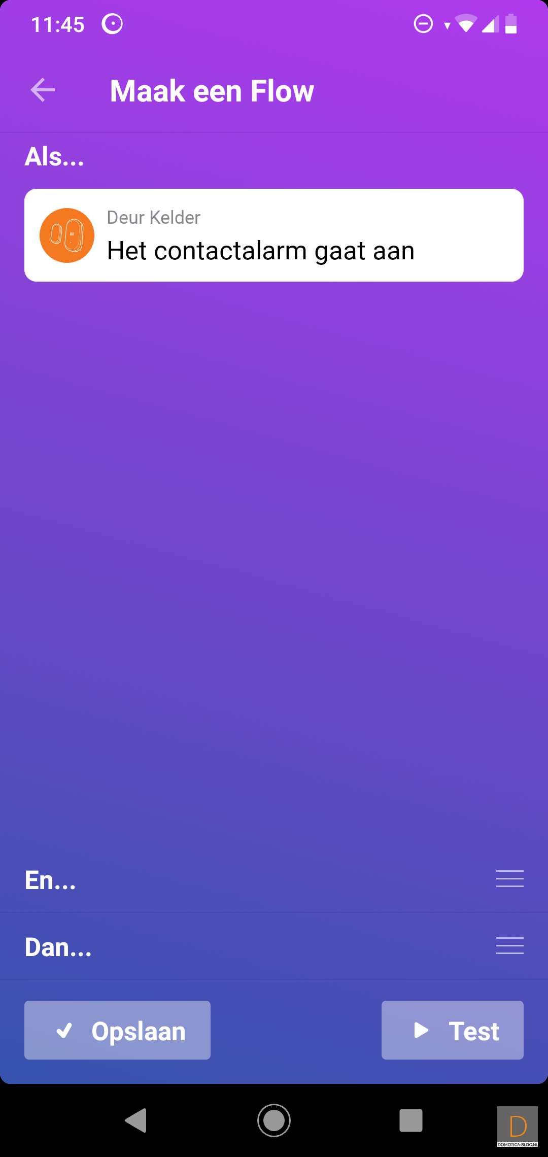 Ik wil graag dat bij het openen van de deur, en als de zon onder is, dat dan de RGBW aangezet wordt. We nemen hiervoor als startpunt de deursensor en gebruiken de tijdskaart voor de zonsondergang. Als laatste zorgen we dat de RGBW controller wordt aangezet.
