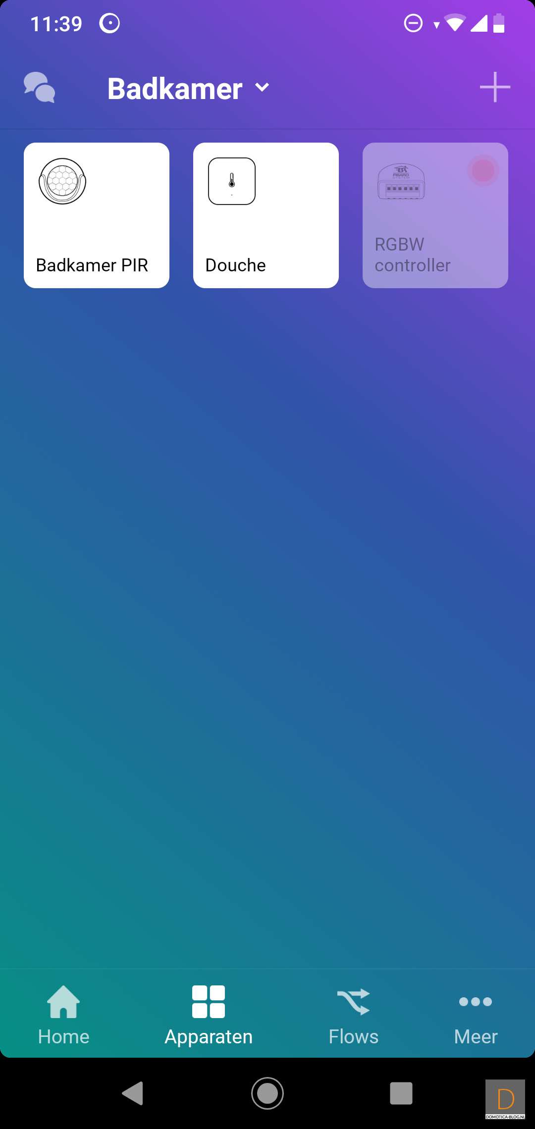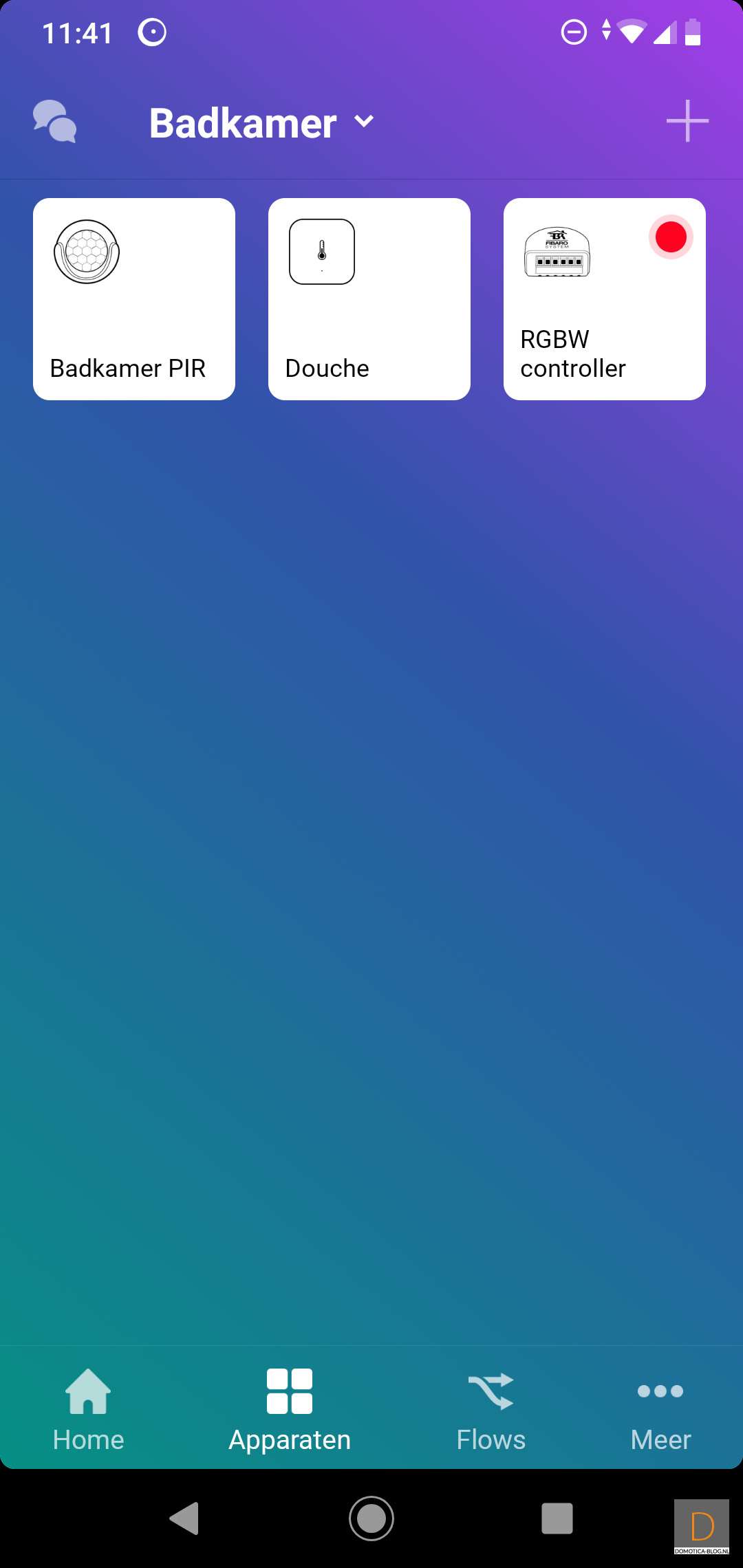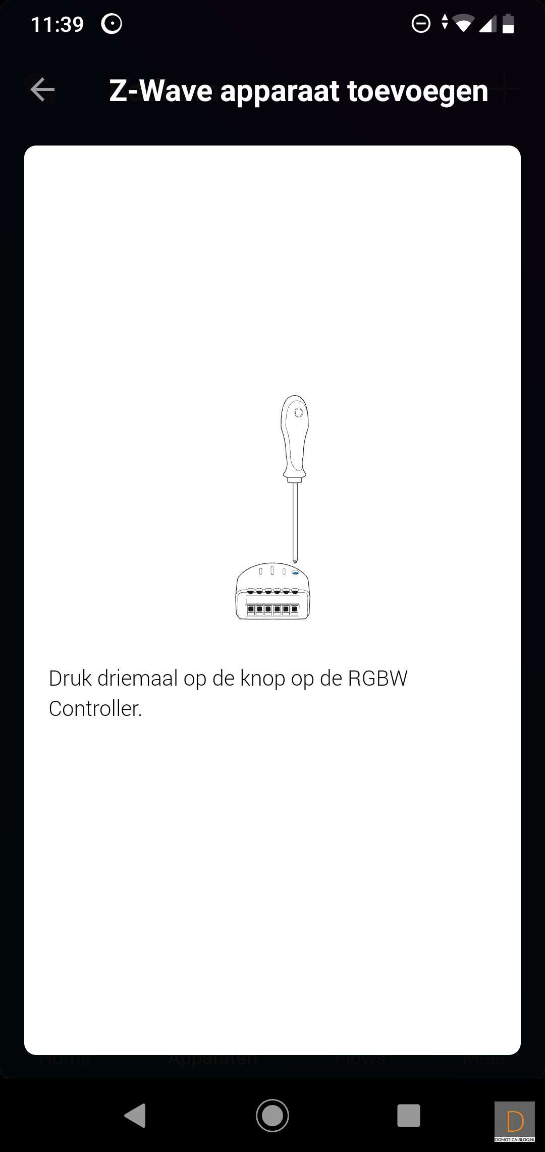 Zoals gebruikelijk is de Homey als eerste controller aan de beurt. Deze module is al een tijdje op de markt dus ik verwacht geen problemen. Als eerste stap loggen we in op de Homey. Vervolgens gaan we naar het apparaten gedeelte en klikken op het (+) icon. Hierna installeer je de Fibaro APP (mocht je deze nog niet hebben) vervolgens zoek je de RGBW controller op. Hierna voorzie je de RGBW controller van stroom. Hij zal hierna meteen gevonden worden. Mocht dit niet het geval zijn dan kun je het "B" knopje aan de voorkant 3x indrukken. Als het toevoegen is gelukt zal hij bij je apparaten verschijnen.
