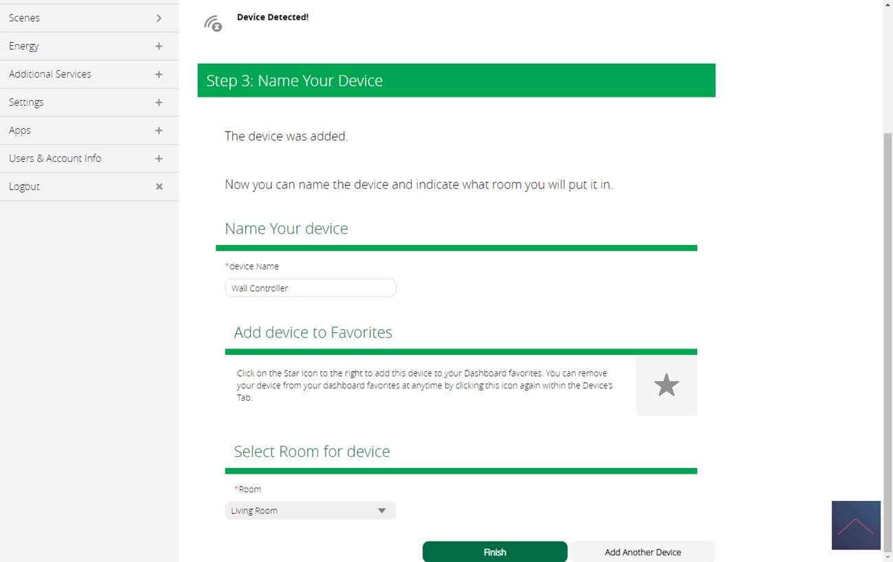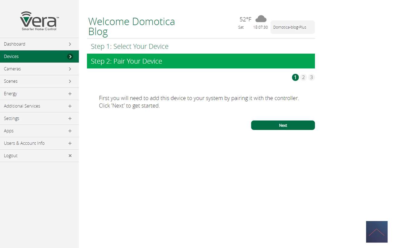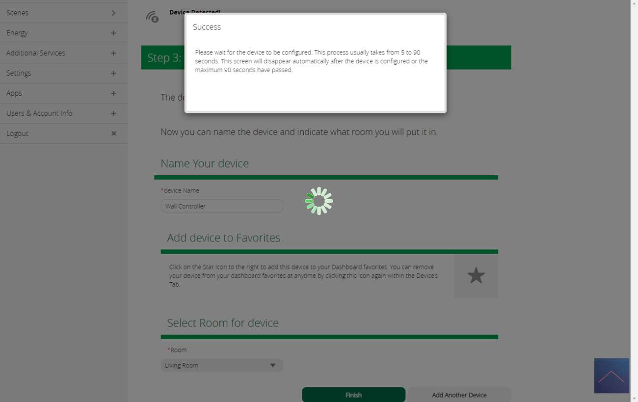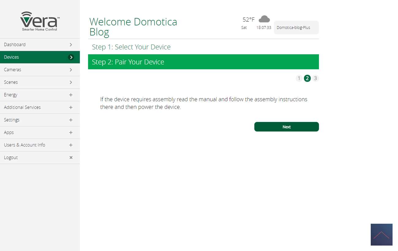 Na wat stappen wordt er gevraagd om de Walli in leermodus te zetten. Dit kun je doen door 3x op een knop te drukken. Ik zie de LED geel knipperen de Vera geeft aan dat hij gevonden is.