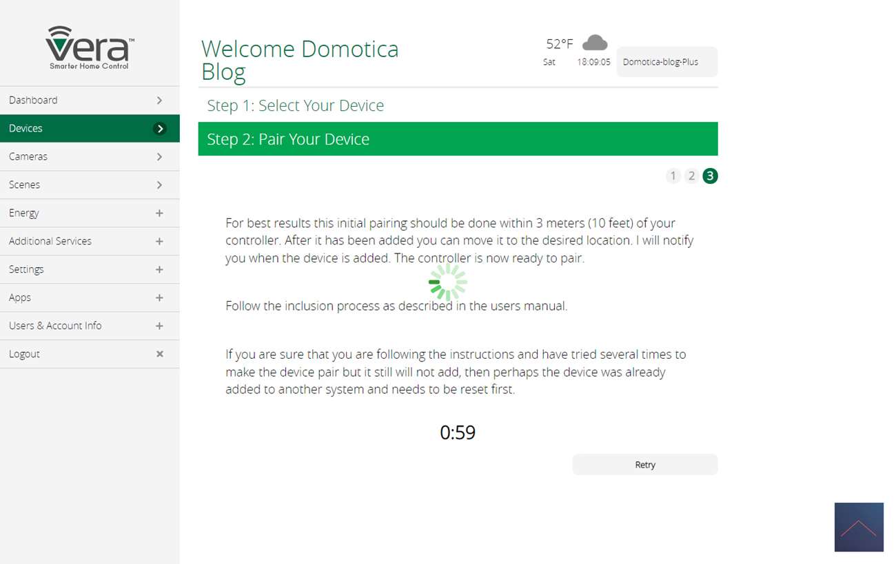We loggen vervolgens in op de Vera en gaan naar onze apparaten en klikken op "add device" en zoeken de controller op. Zoals verwacht wordt deze niet gevonden dus voegen we hem als "generic z-wave device" toe.