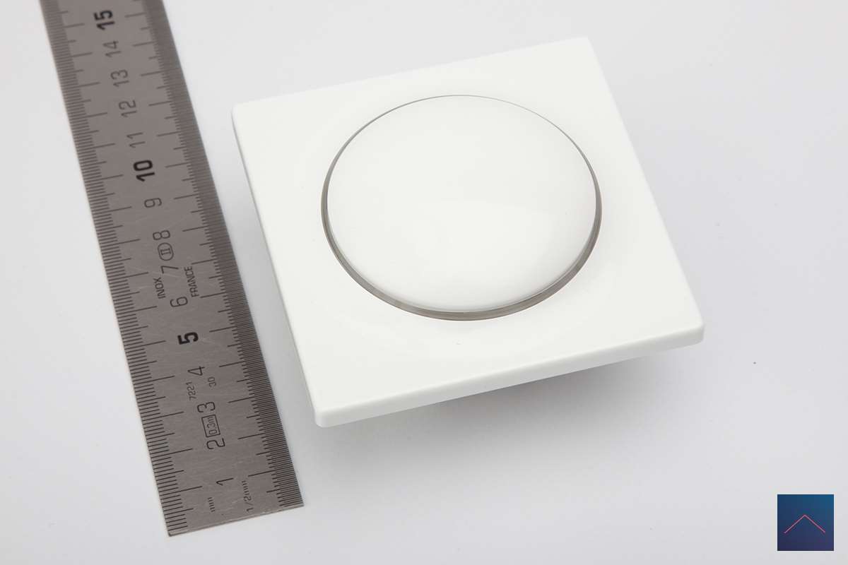 Zoals we gewend zijn van Fibaro is de Walli ook weer netjes afgewerkt. De schakelaar ziet er luxe uit en voelt stevig aan. Om de knop zitten 4 leds die oplichten als je hem o.a. aanzet. Met deze schakelaar kun je de aangesloten lamp dimmen en natuurlijk aan- of uitzetten.